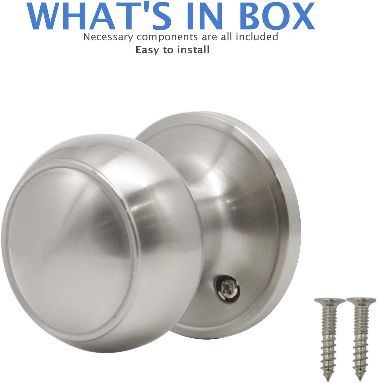 Combine functionality and style with this durable 2-pack door knob set. Featuring a pull or push design, itâs perfect for both modern and traditional door styles. The satin nickel finish adds a touch of elegance to any setting, while the solid steel mounting plate ensures long-lasting strength and secure installation. With ANSI Grade 3 compliance, these interchangeable handlesets offer reliable performance and safety. Designed for easy use, they come with all necessary accessories and clear instructions to simplify the installation process. Whether for residential or commercial applications, this set is built to meet your needs. We stand behind our product with a satisfaction guarantee. If you're not happy with your purchase, our team is here to helpâno hassle, no compromise.Premium 2-Piece Door Knob Set