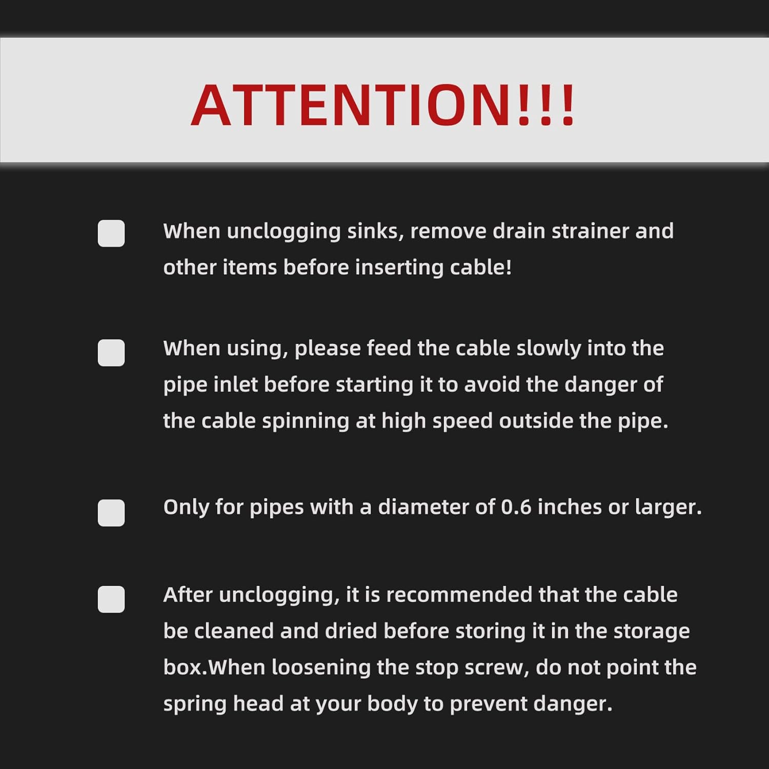 Whether you're dealing with stubborn blockages caused by grease, hair, or debris, the Godgetory 50FT Auger is built to handle them all with precision and care. Its powerful design ensures that you can unclog drains quickly, saving you time and hassle without risking damage to your plumbing system.