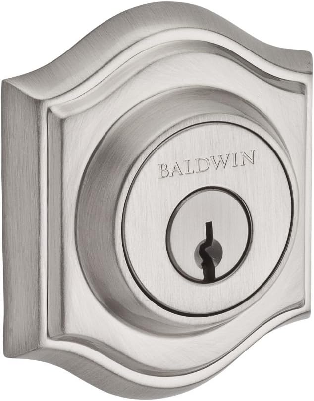 Enhance your home's security and style with the Baldwin Traditional Arch Single Cylinder Deadbolt in SATIN Nickel finish. This durable and aesthetically pleasing door hardware is designed to complement traditional home decor while delivering reliable protection for your family.
