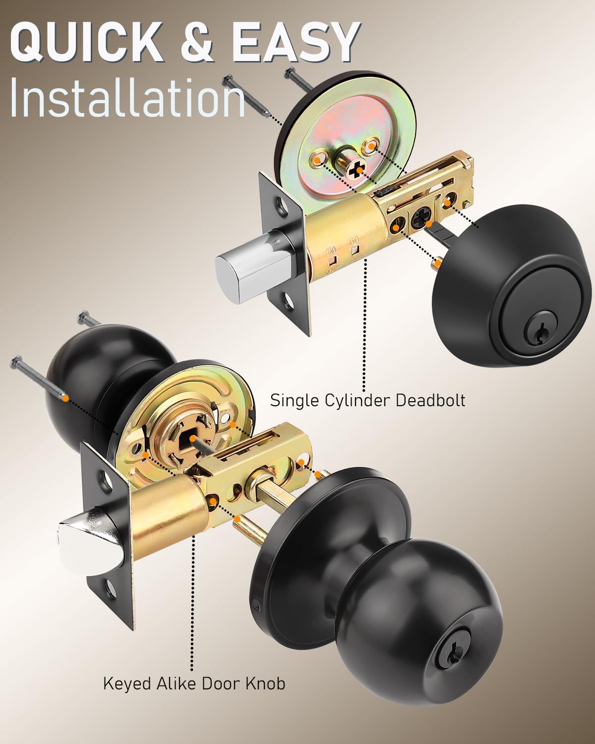 Engineered to outperform, this Brotima door lockset and deadbolt set are built for long-lasting protection and exceptional security. Undergoing over 250,000 simulations, these locks are designed to withstand wear, tear, and tampering, making them a reliable choice for both homes and outdoor spaces.