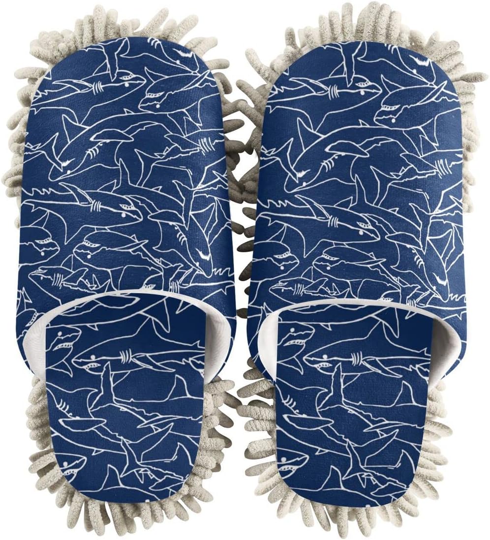 Meet the DOMIKING Shark Mop House Slippers â the perfect blend of comfort and functionality for those who want to keep their spaces clean without the hassle. Designed with a soft chenille sole, these slippers efficiently gather pet hair, dust, and dirt, making your floors spotless with every step. Whether you're in a busy household or a professional workspace, these slippers offer a quiet, easy way to maintain cleanliness while staying comfortable.