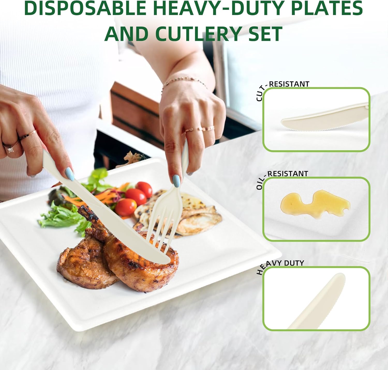 With a focus on reducing environmental impact, our set is perfect for eco-conscious individuals. It combines the convenience of disposable items with the sustainability of compostable materials. By choosing this set, you contribute to a cleaner planet while enjoying quality, reusable tableware for your gathering needs.