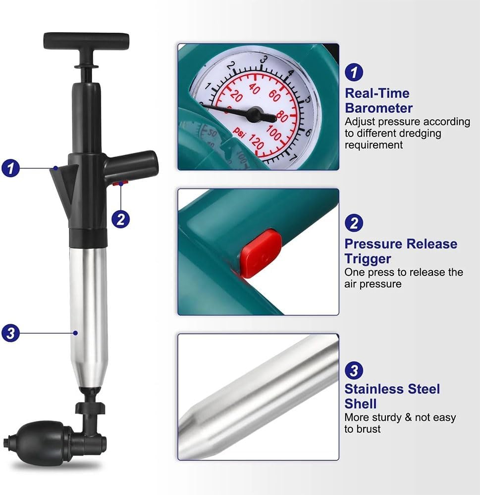 This tool is safe and effective for both families and professionals. It delivers strong, targeted blows to clear clogs caused by hair, grease, and debris without the need for costly plumbing services.