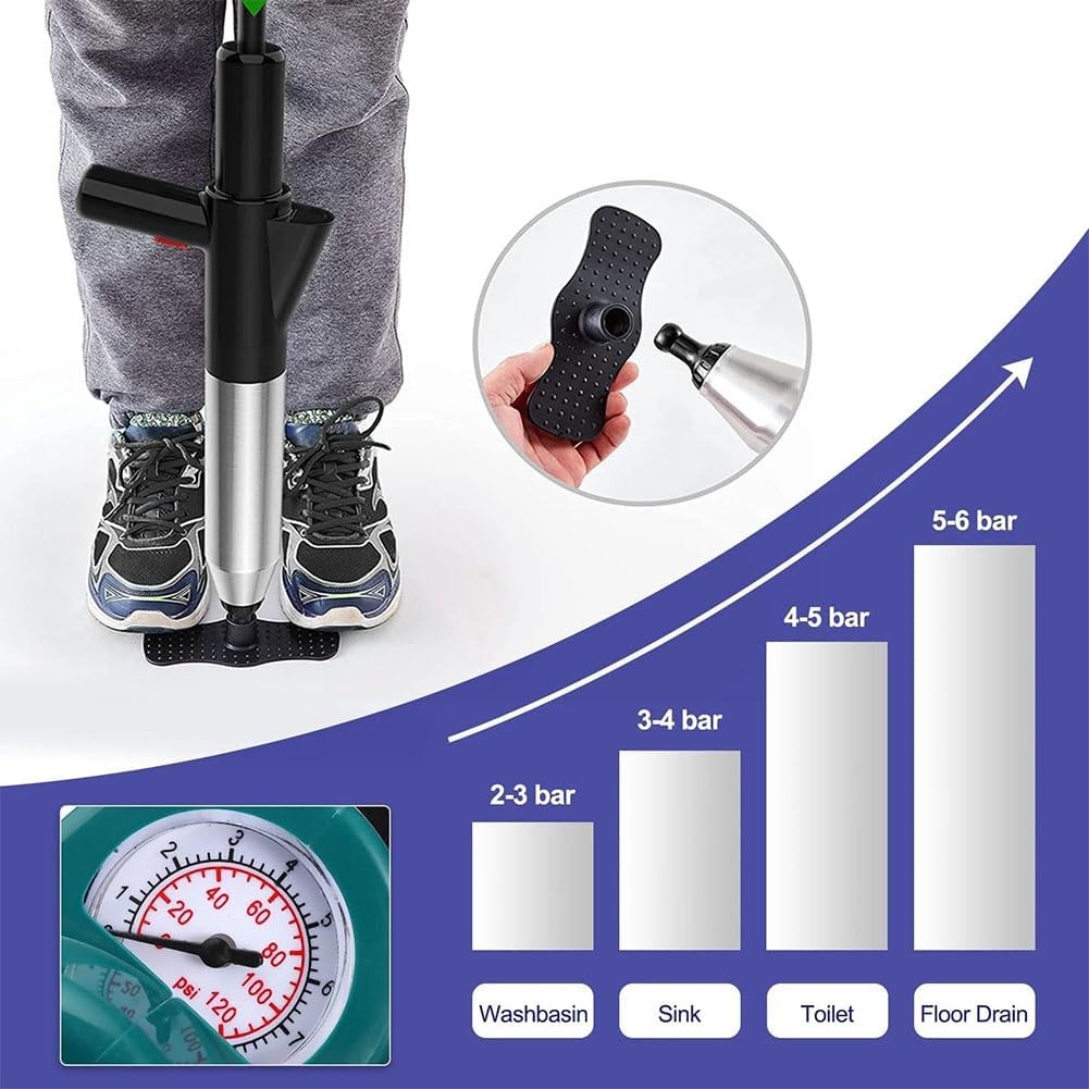 Tackle stubborn clogs with this powerful high-pressure air blaster. Designed for all your home plumbing needs, it's the perfect tool for toilets, sinks, showers, and floor drains.