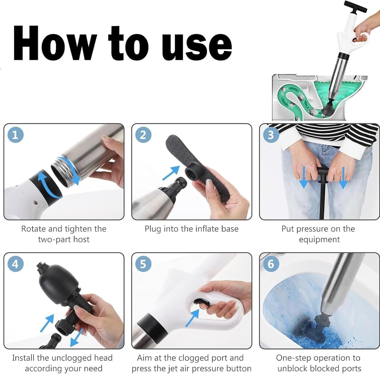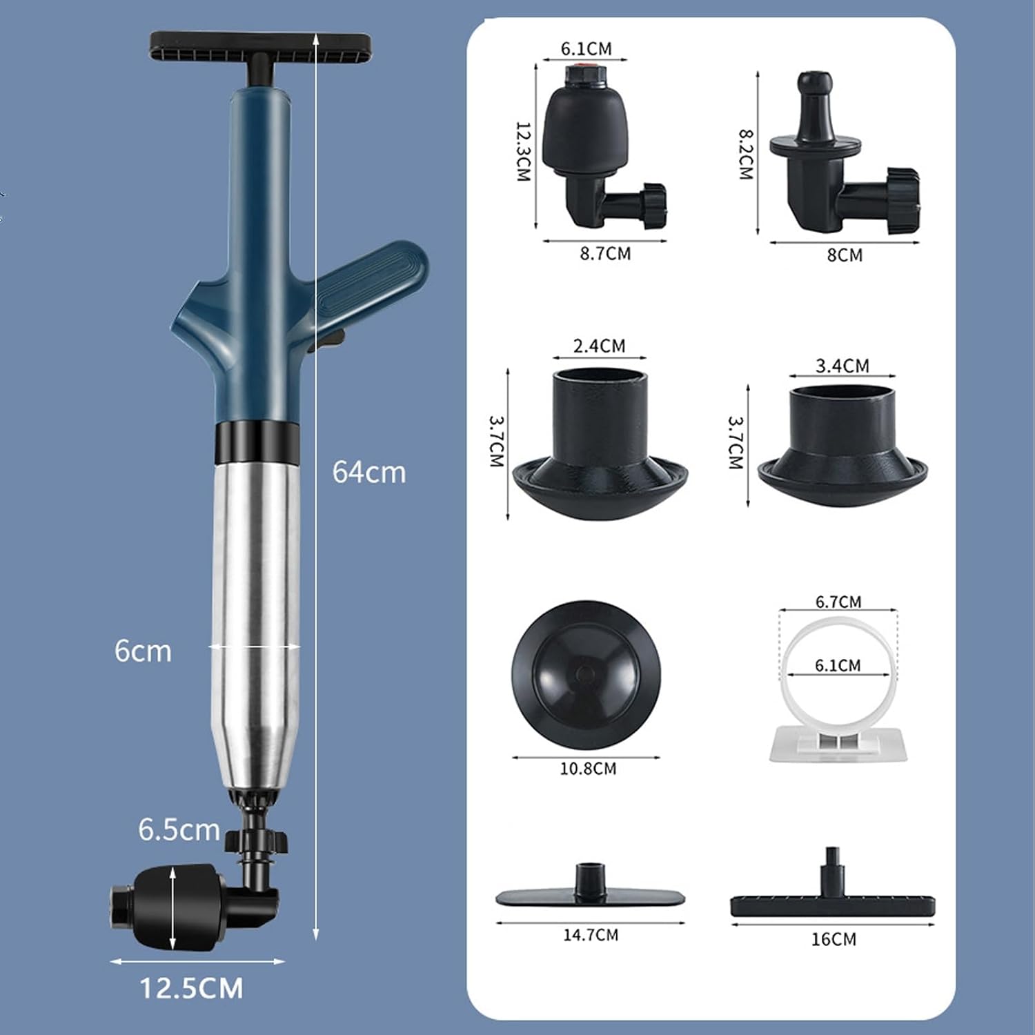 Equipped with five interchangeable heads, this pneumatic unclogger is ready for any job. Whether you're dealing with a floor drain, toilet, or kitchen sink, the right head is always within reach, making it a must-have for both DIYers and professional plumbers.