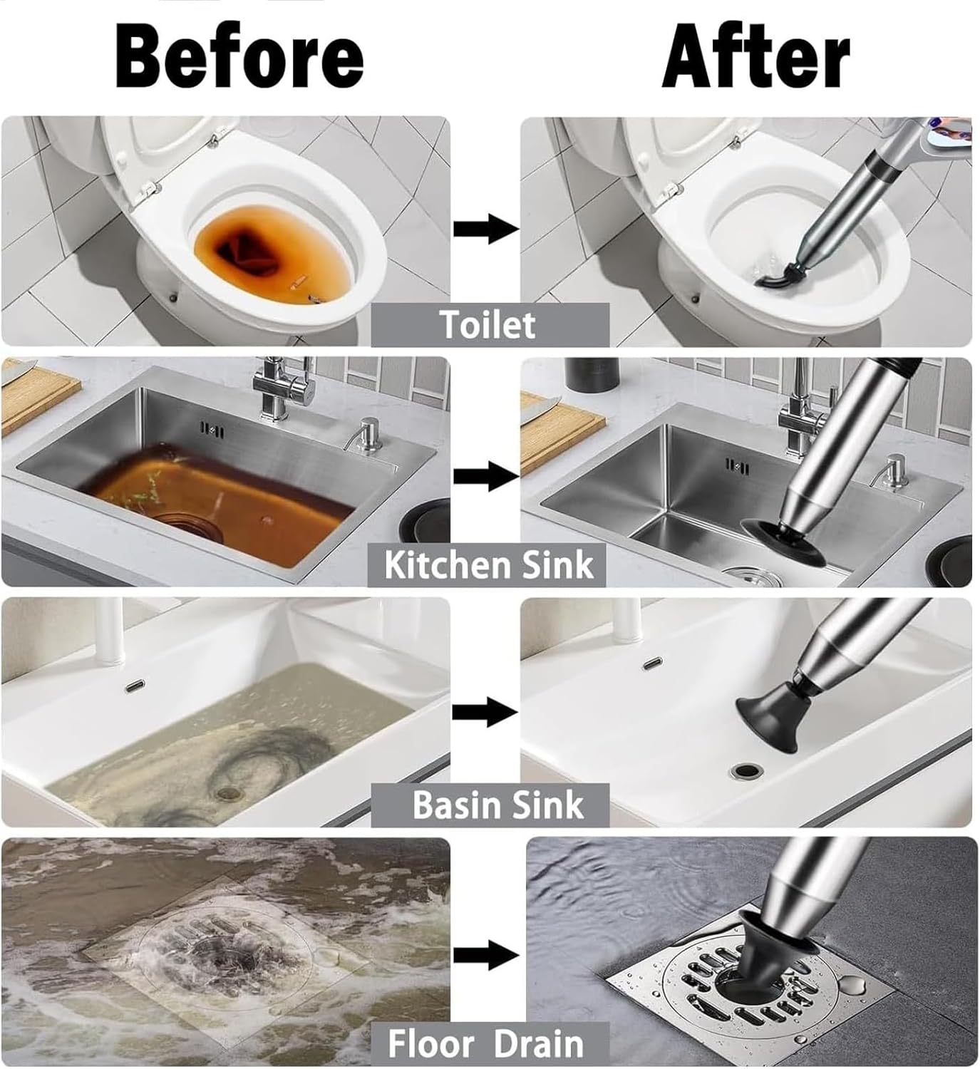 One-touch operation makes this unclogger fast and easy to use. With precision and concentrated force, you can clear blockages in a matter of minutes, keeping your home clean and functional without the mess and frustration of traditional methods.