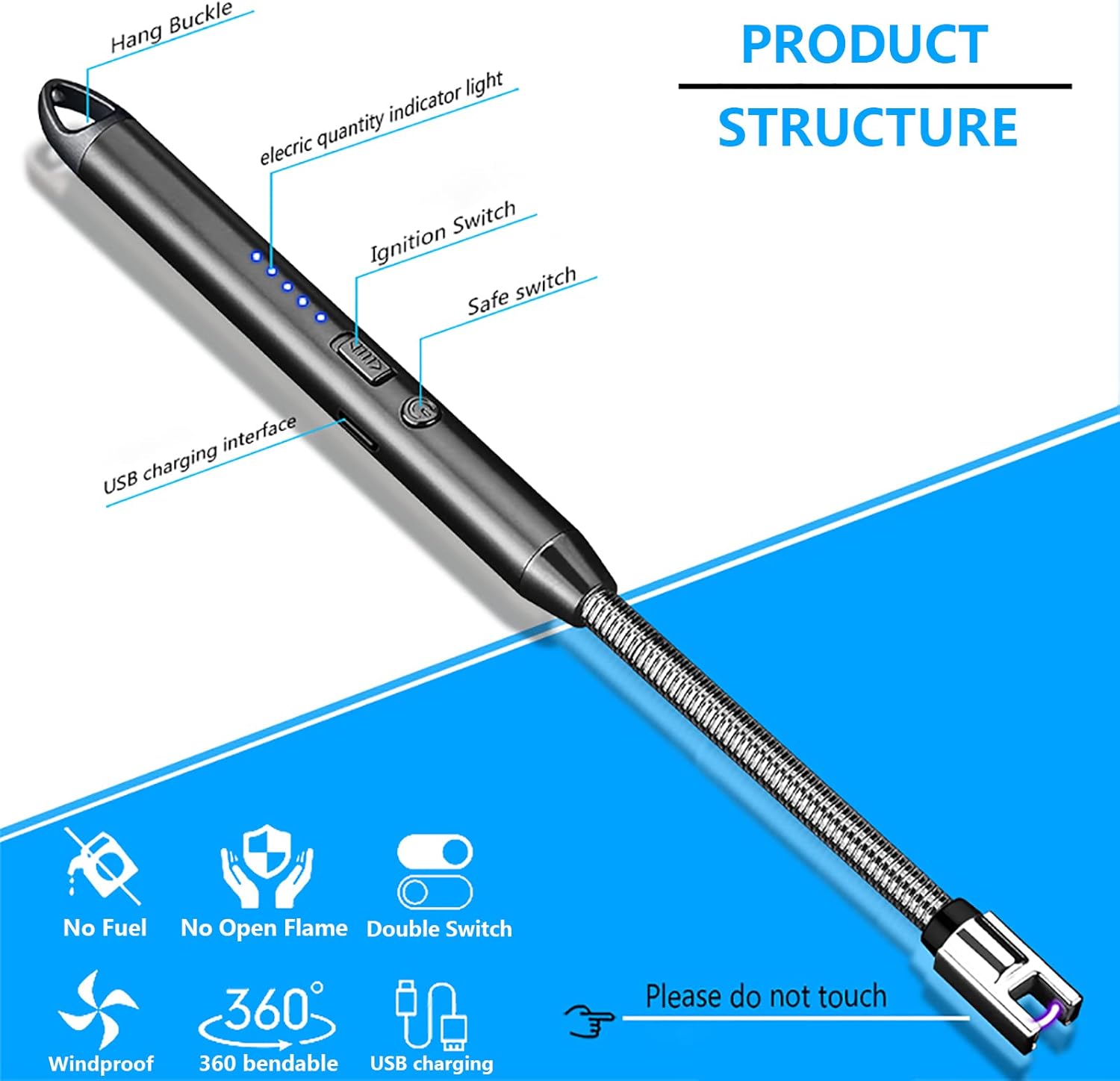 With a built-in LED battery display, you'll always know when it's time to recharge. The 360° flexible wand ensures easy access to any flame, making it perfect for outdoor enthusiasts, campers, and BBQ lovers. Its durable, weatherproof design is engineered to withstand the toughest conditions, while the USB charging feature means you can power it up anytime, anywhere.