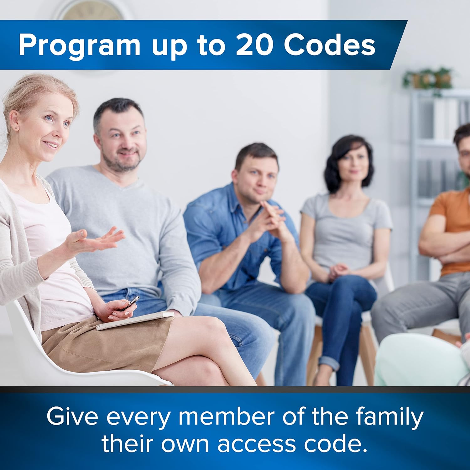 Experience install-ready security with our Topanova Door Lock. Use your convenient keyless keypad to enter your 4-10 digit code safely and confidently. With 20 user codes, dual panic buttons, and interchangeable keypad, your lock system adapts perfectly to your needs. Motorized operation andalarm feature keep you safe both ways.