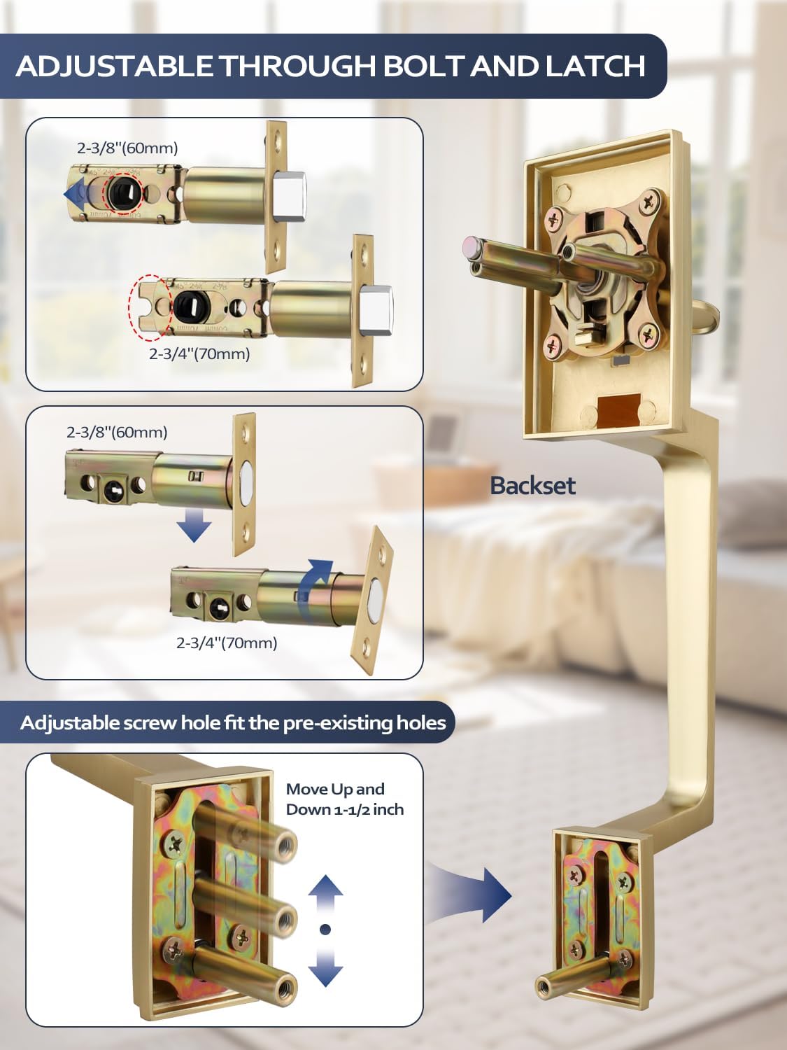Featuring adjustable door latches that fit perfectly within 2 3/8" to 2 3/4", this handle set ensures a secure fit on your door. The reversible design makes it suitable for both left and right-handed doors, giving you flexibility during installation. Everything you need to install is included â a screwdriver and clear instructions â so you can enjoy a seamless setup without any hassle.