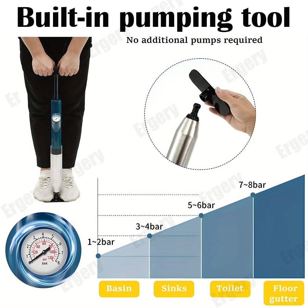 The Ergery Pneumatic Floor Drain Plunger is the smart solution to stubborn clogs. With a compact and portable design, it fits easily in small spaces and provides efficient unclogging without the need for harsh chemicals or traditional tools.