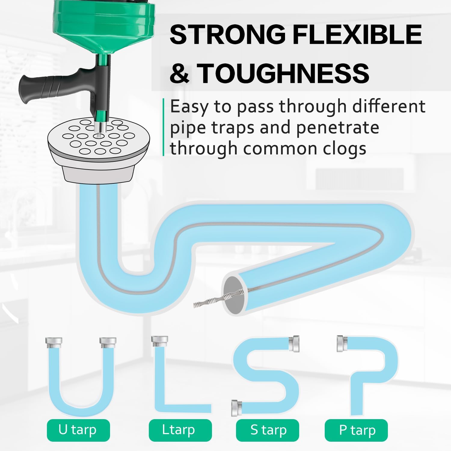 Featuring a 50-foot premium steel cable, the Feeloco can reach deep into pipes, thanks to its high-strength steel drum shell and flexible design. It's built to last, and the ergonomically designed handle reduces hand strain during use. This sewer snake is compatible with pipes from 1-1/4 inch to 3 inches, making it suitable for a range of domestic plumbing tasks.