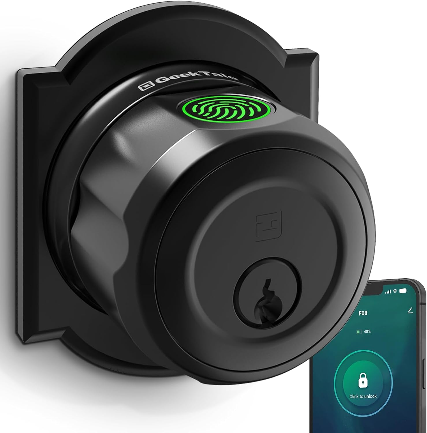 Say goodbye to traditional keys with the GeekTale smart lock. Its advanced 3-in-1 keyless entry system includes fingerprint, Bluetooth, and physical key options, giving you freedom to access your home or garage whenever you need. Thanks to its 360° fingerprint ID technology, unlocking is fast and secureâjust a touch in 0.3 seconds. The intuitive app lets you manage access easily, track who enters, and ensure your home remains protected at all times. Designed for everyday use, the GeekTale is the ideal smart door lock for front doors, garages, and more. With app control and professional installation included, you can enjoy hassle-free security without the stress of lost keys or complicated setup.GeekTale Fingerprint Deadbolt Lock â The Future of Secure Access