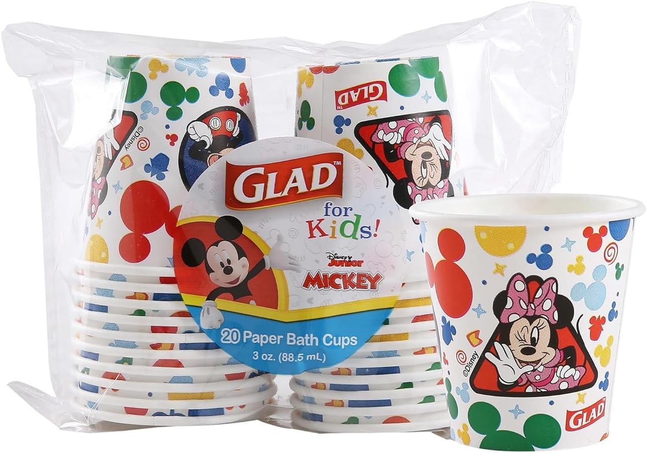 Glad for Kids Disney-themed mini paper cups are perfect for children’s dental routines, featuring 3 oz capacity, vibrant designs, and sturdy construction. Ideal for use in the bathroom during brushing and rinsing, these cups are convenient, eco-friendly, and ideal for small amounts of toothpaste or mouthwash.