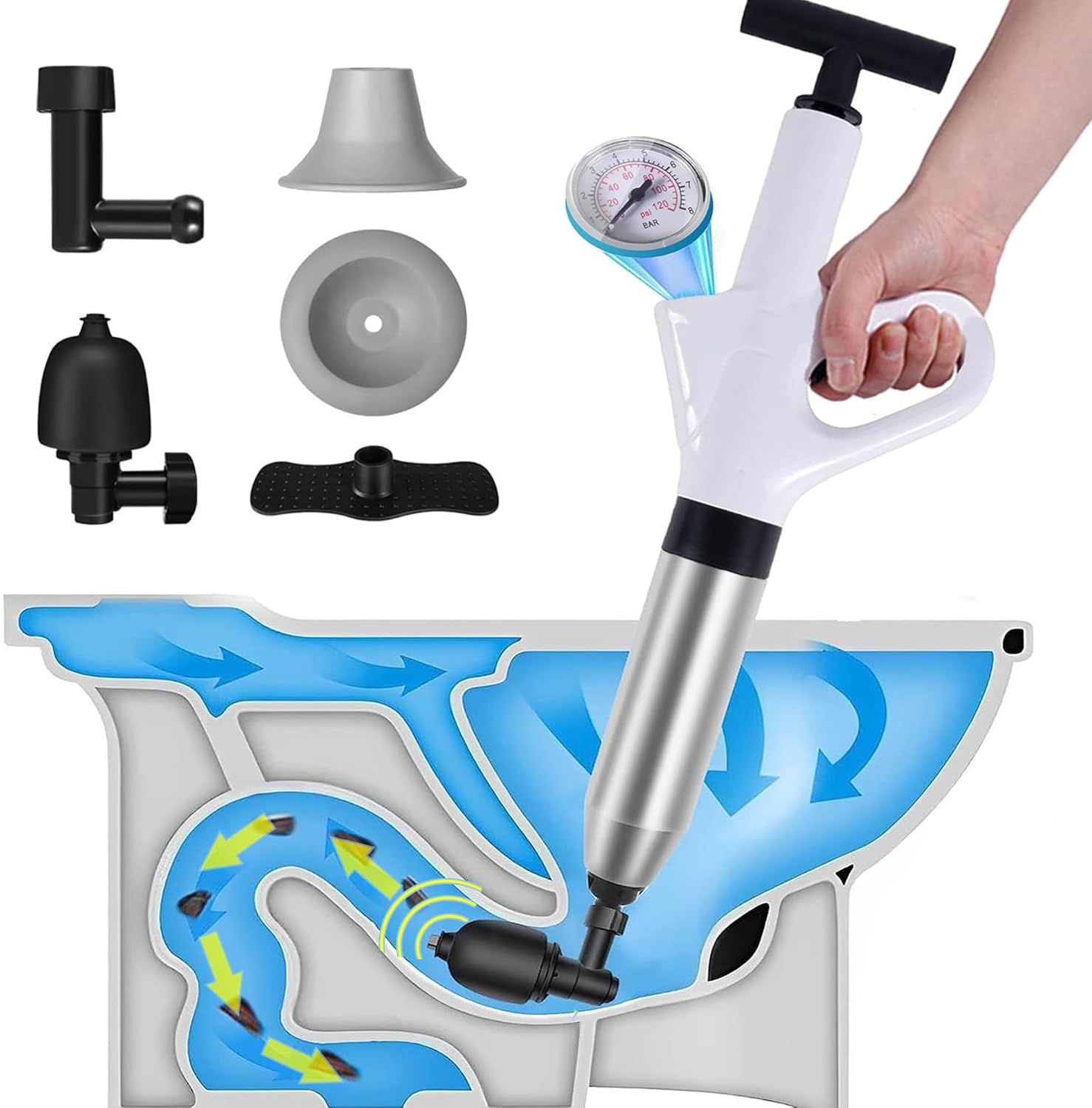 With its set of interchangeable nozzles, HYPOSFEE can handle a wide range of blockage types, from hair and grease to food particles. The pressure gauge helps you maintain optimal force and ensures a smooth, uninterrupted flow each time. Whether you're dealing with a stubborn toilet or a sink clog, this plunger delivers professional results at home.