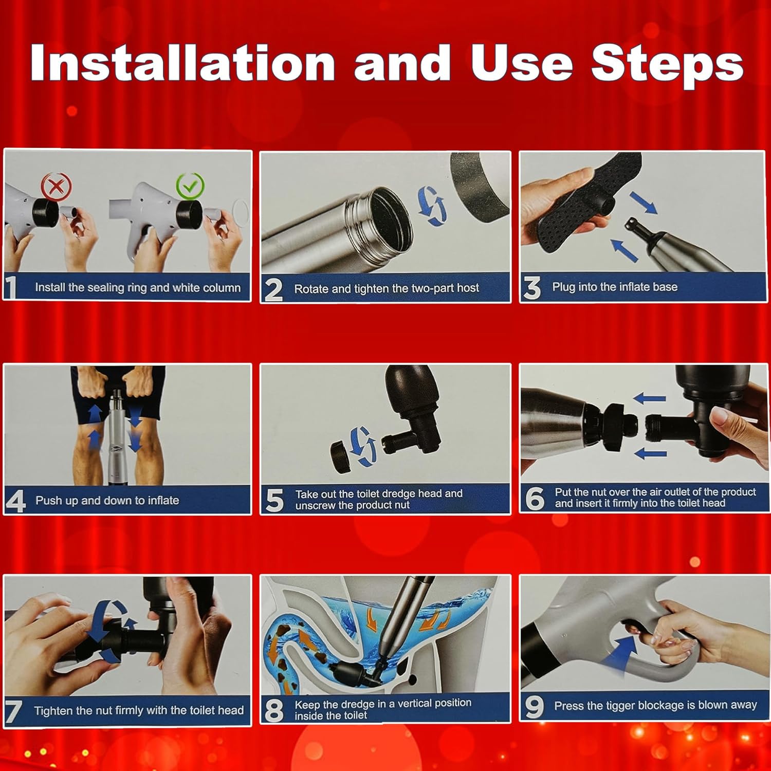 Say goodbye to frustrating clogs with HYPOSFEE, your reliable toilet plunger designed for maximum performance. Crafted from strong, durable stainless steel, this tool offers a secure, non-slip handle that ensures safe and trouble-free use in any bathroom setting. The built-in air pressure monitoring system allows you to monitor the force applied, making it easier to clear blockages without causing damage to your plumbing.