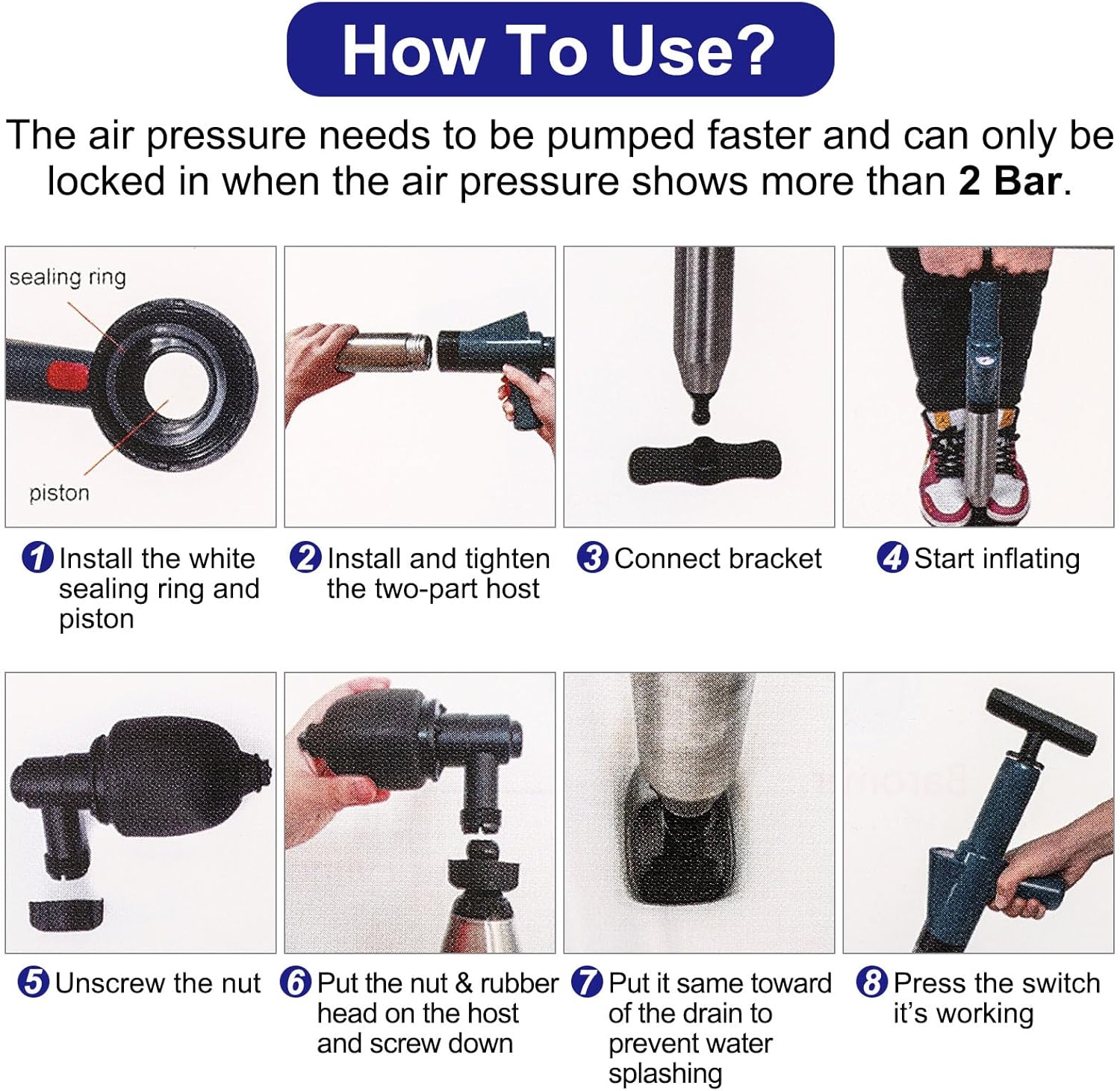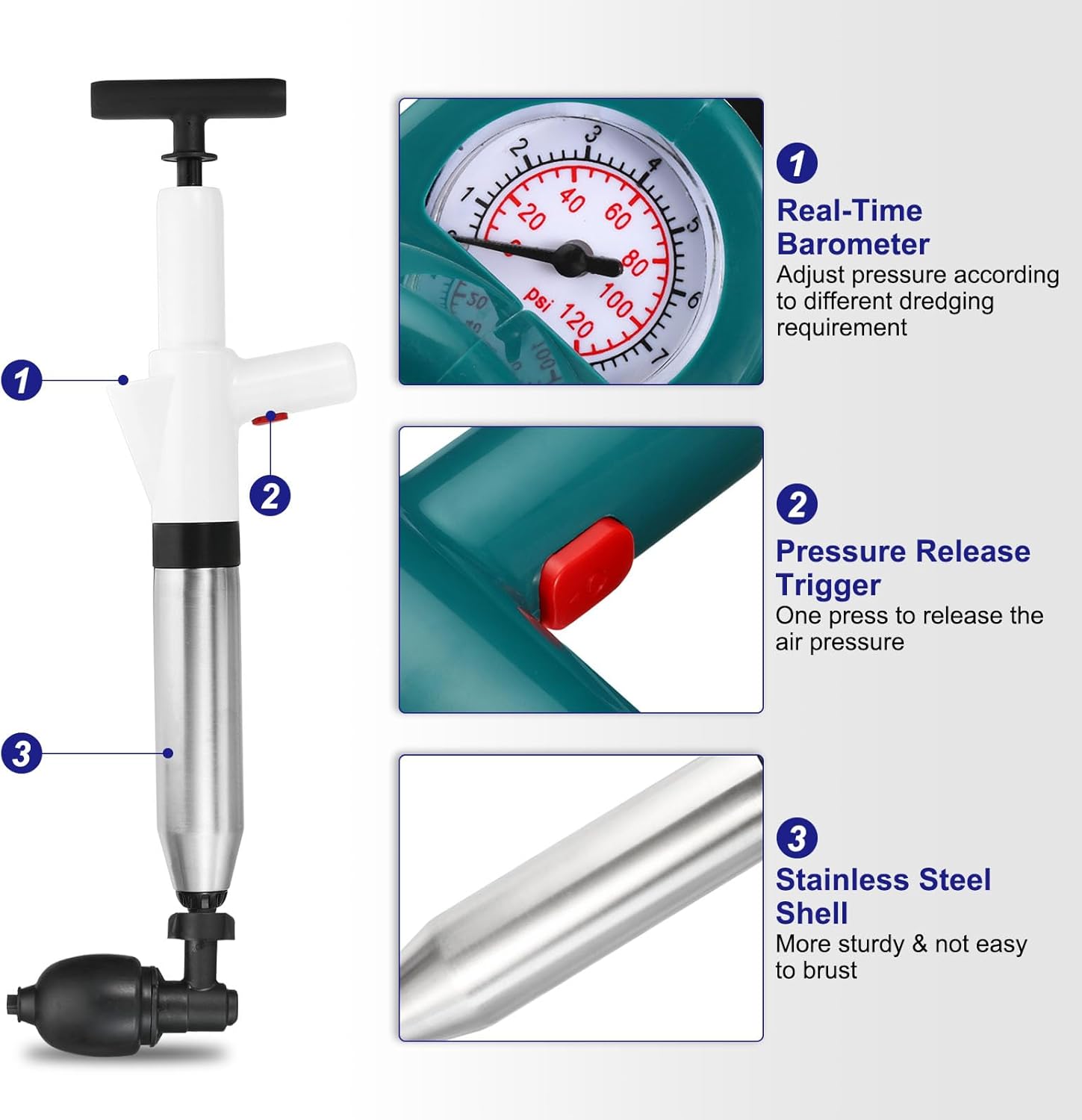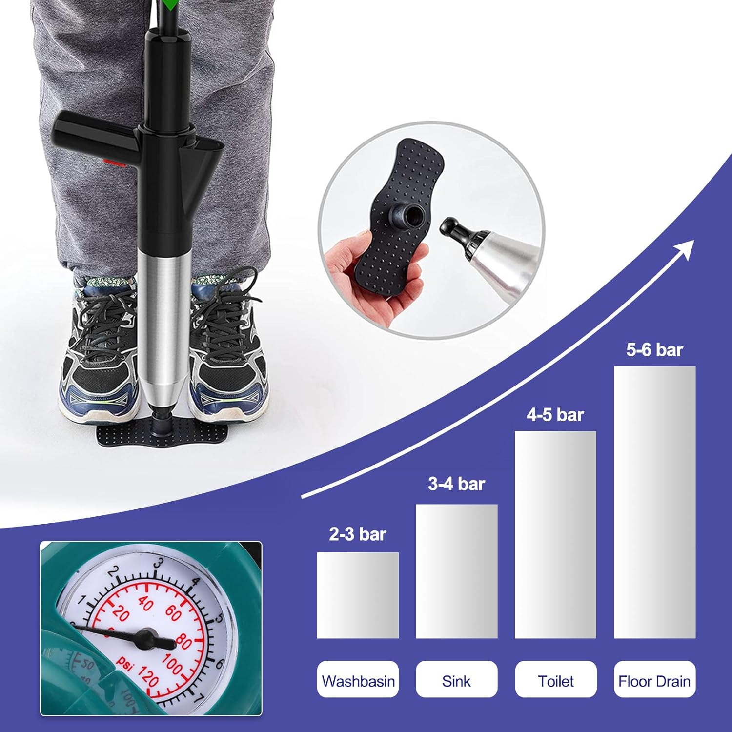Crafted from durable stainless steel, the plunger features a non-slip handle that ensures a firm grip, even in the most challenging conditions. Its secure construction delivers long-lasting use and reliable performance, so you can trust it every time. The built-in real-time barometer allows you to monitor air pressure, ensuring you apply just the right amount of force without causing unnecessary damage.