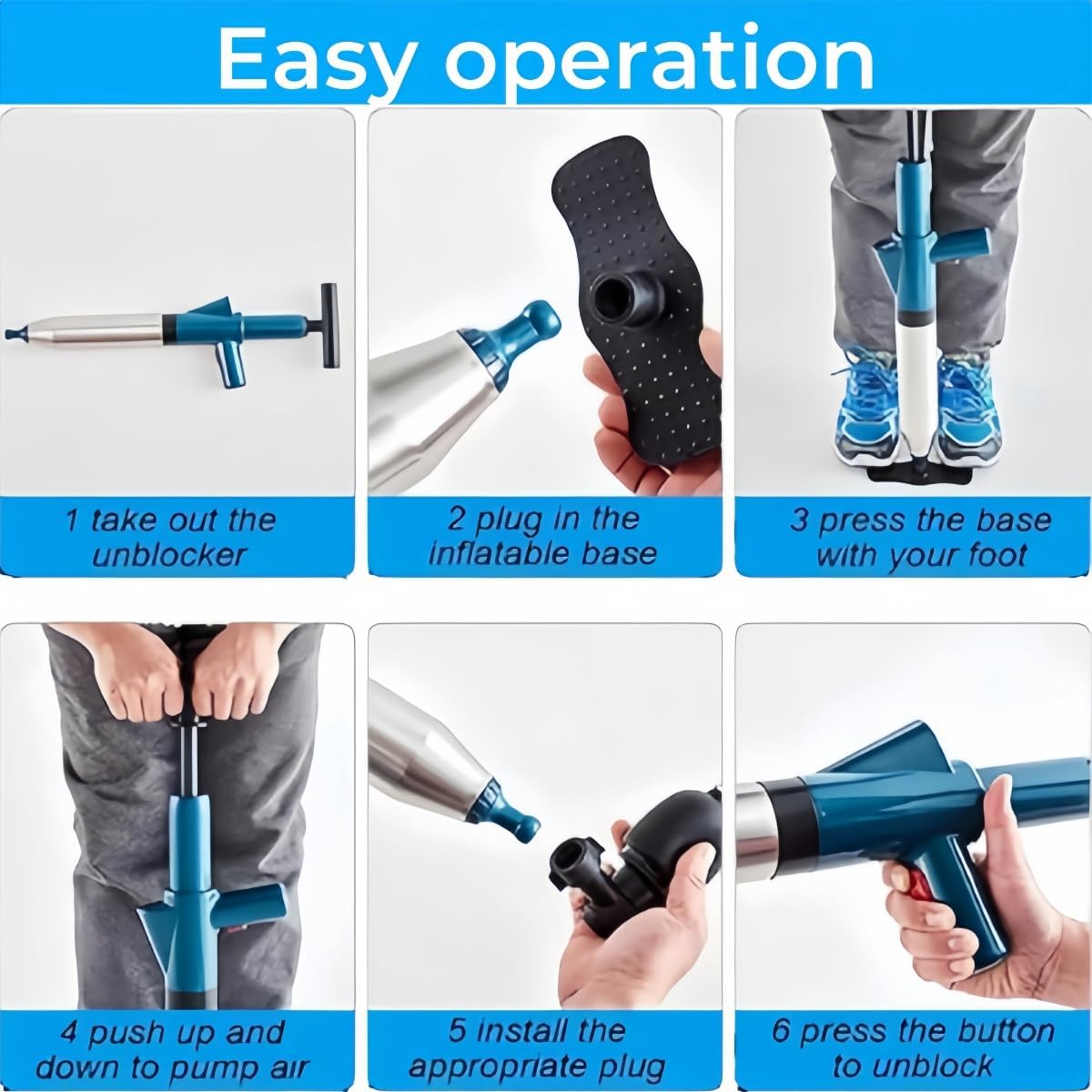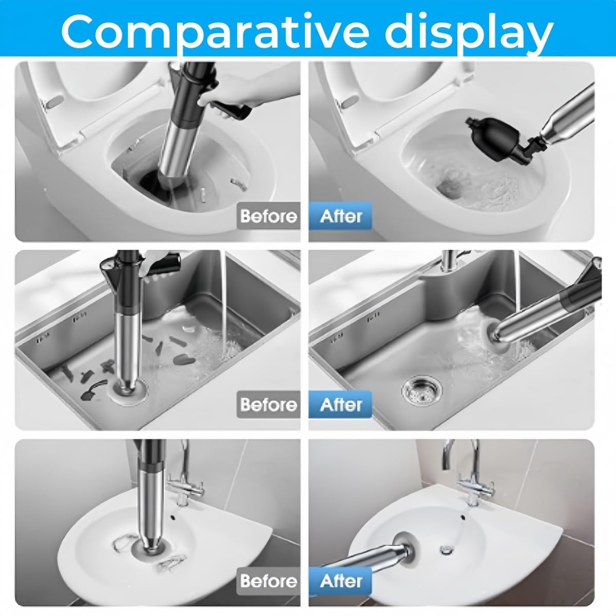 Efficiently tackle tough clogs with our air-powered toilet plunger. Built for quick, professional-grade cleaning, this durable and intuitive tool is perfect for any plumbing task, from sinks to sinks, and everything in between. Experience the hassle-free solution with our powerful plunger