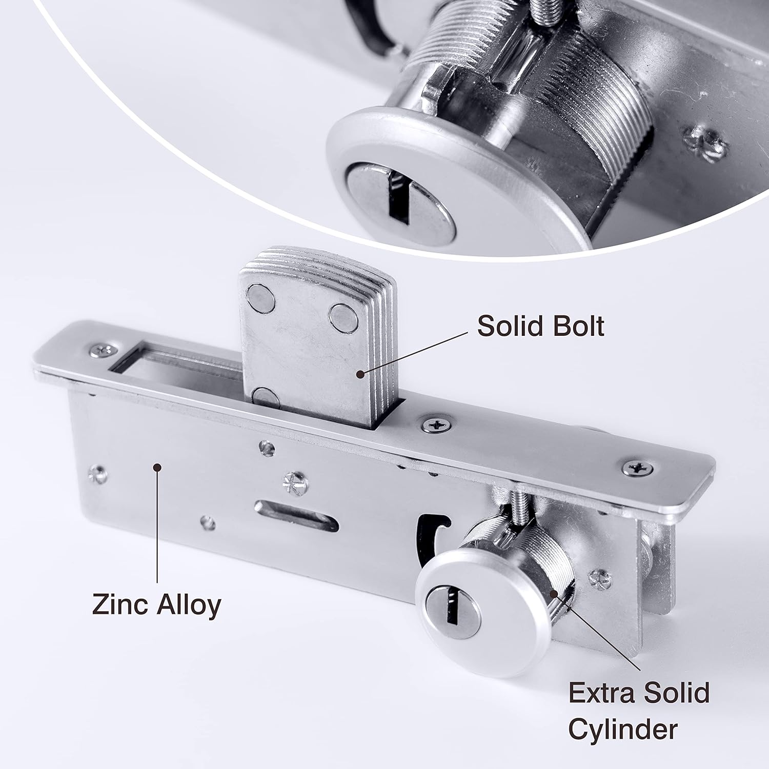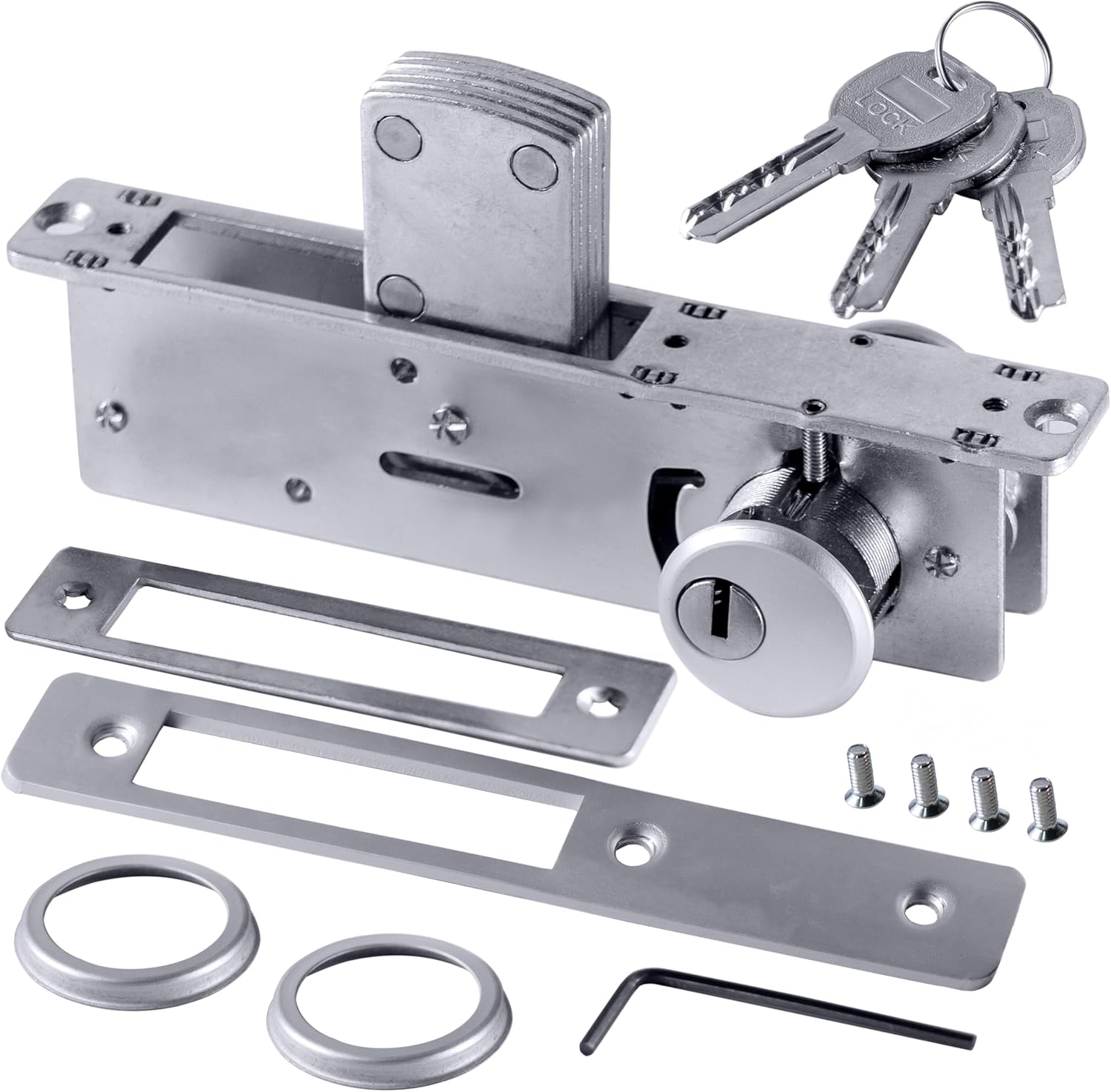 Enhance the security of your commercial space with our high-quality storefront door mortise lock. Designed for durability and reliability, this lock is built to protect your business from unwanted access. The zinc alloy casing ensures long-lasting resilience, while the five-ply laminated steel deadbolt provides superior resistance against forced entry. Available with a 1-1/8" backset, it fits seamlessly on sliding or framed doors with thickness ranging from 1-3/4" to 1-13/16" (44 to 46mm). Our commercial storefront door mortise lock is trusted for its robust construction and top-rated security performance. Whether you're securing a retail space, office entrance, or any commercial doorway, this lock offers unmatched protection with a modern, user-friendly design. The zinc alloy frame and steel deadbolt not only ensure strength but also provide peace of mind, knowing your property is well-protected. With all the necessary tools and spare parts included, installation is effortless and reliable. Customers consistently praise this lock for its ease of use, long-term value, and strong security. Itâs more than just a lockâitâs an essential piece of hardware for anyone looking to secure their commercial space with confidence and efficiency. Upgrade to a lock that combines strength, precision, and user-friendly design to protect your business environment. Whether you prioritize durability, security, or ease of installation, our commercial storefront door mortise lock delivers on all fronts.Commercial Storefront Door Mortise Lock