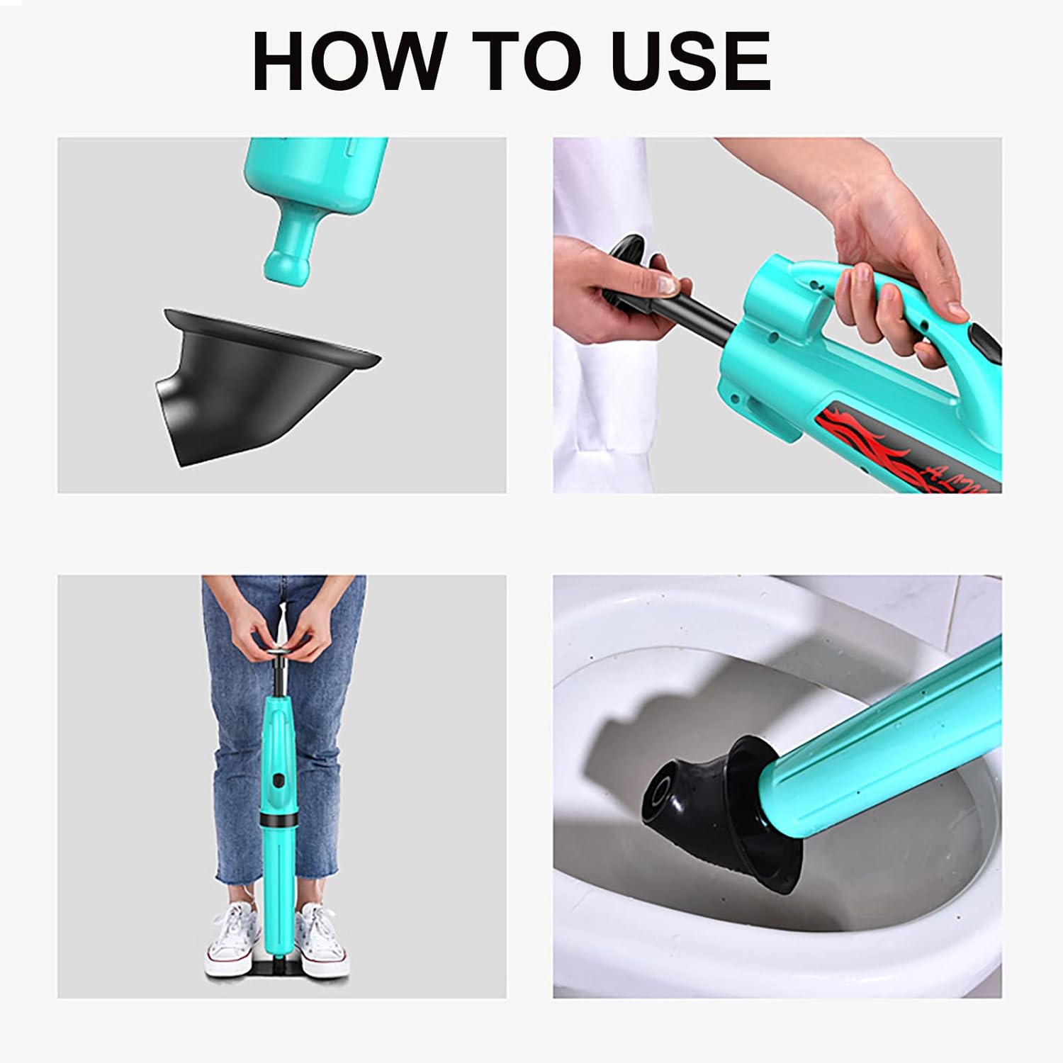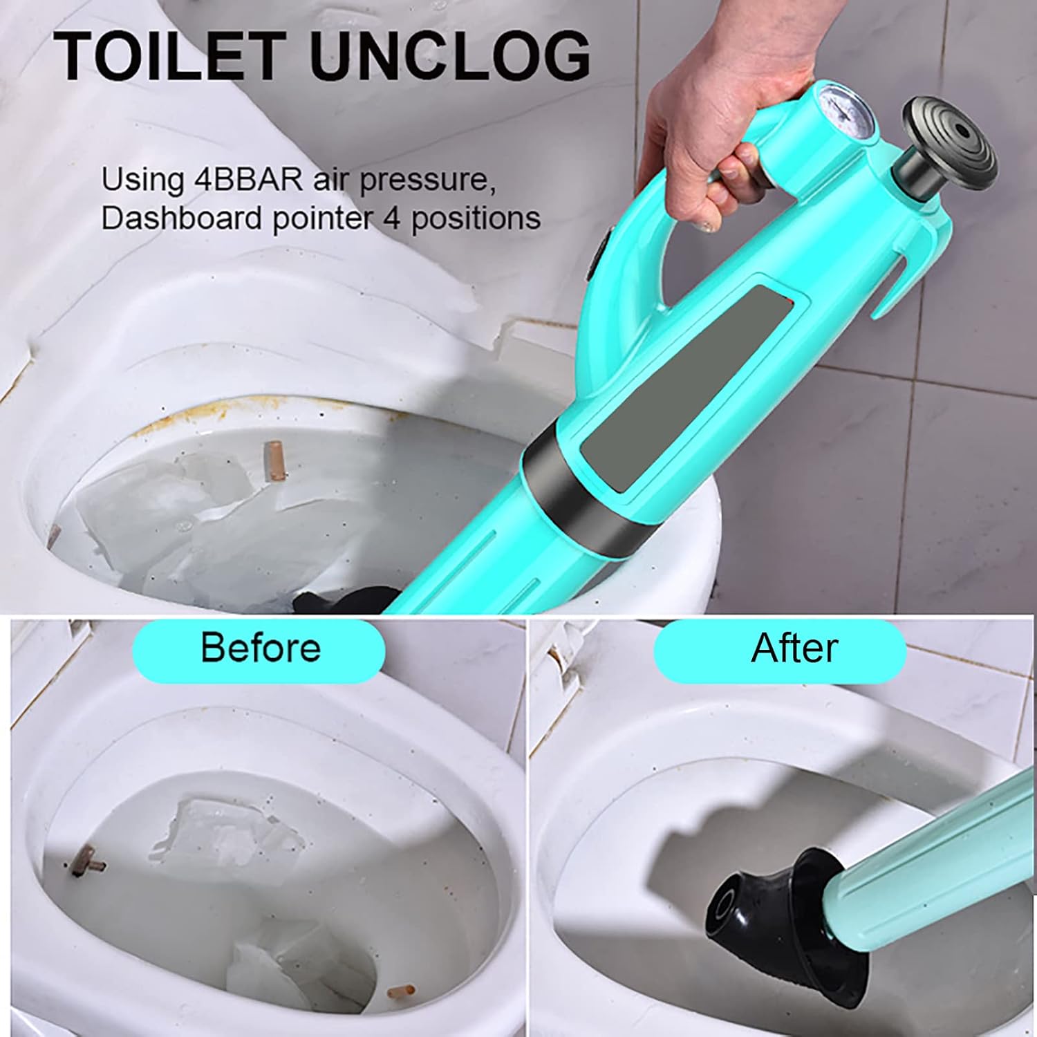 Tackle stubborn clogs in toilets, sinks, and floor drains with this powerful high-pressure unclogging tool. Its innovative design includes an air pressure indicator, making it easy to adjust the right amount of pressure for quick and efficient unclogging. Built with durable, eco-friendly ABS and natural rubber, this plunger is both long-lasting and kind to the environment. Four versatile suction cups allow you to handle various blockages caused by hair, cloth, grease, and more. The integrated inflation system lets you press air to reach high pressure in just a few seconds, eliminating the need for external tools. Ideal for a single-use solution, this sewage pipe unclogger delivers fast results and helps maintain the smooth flow of your plumbing system.
