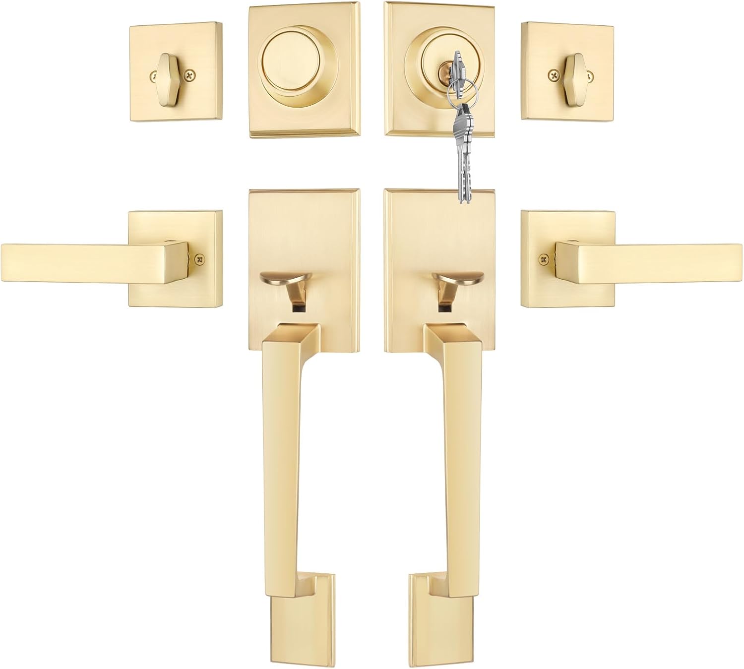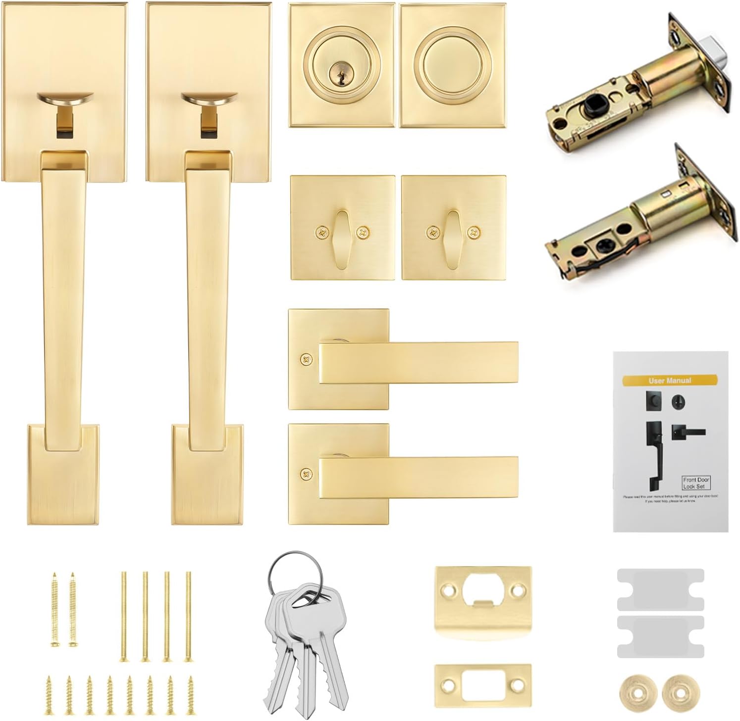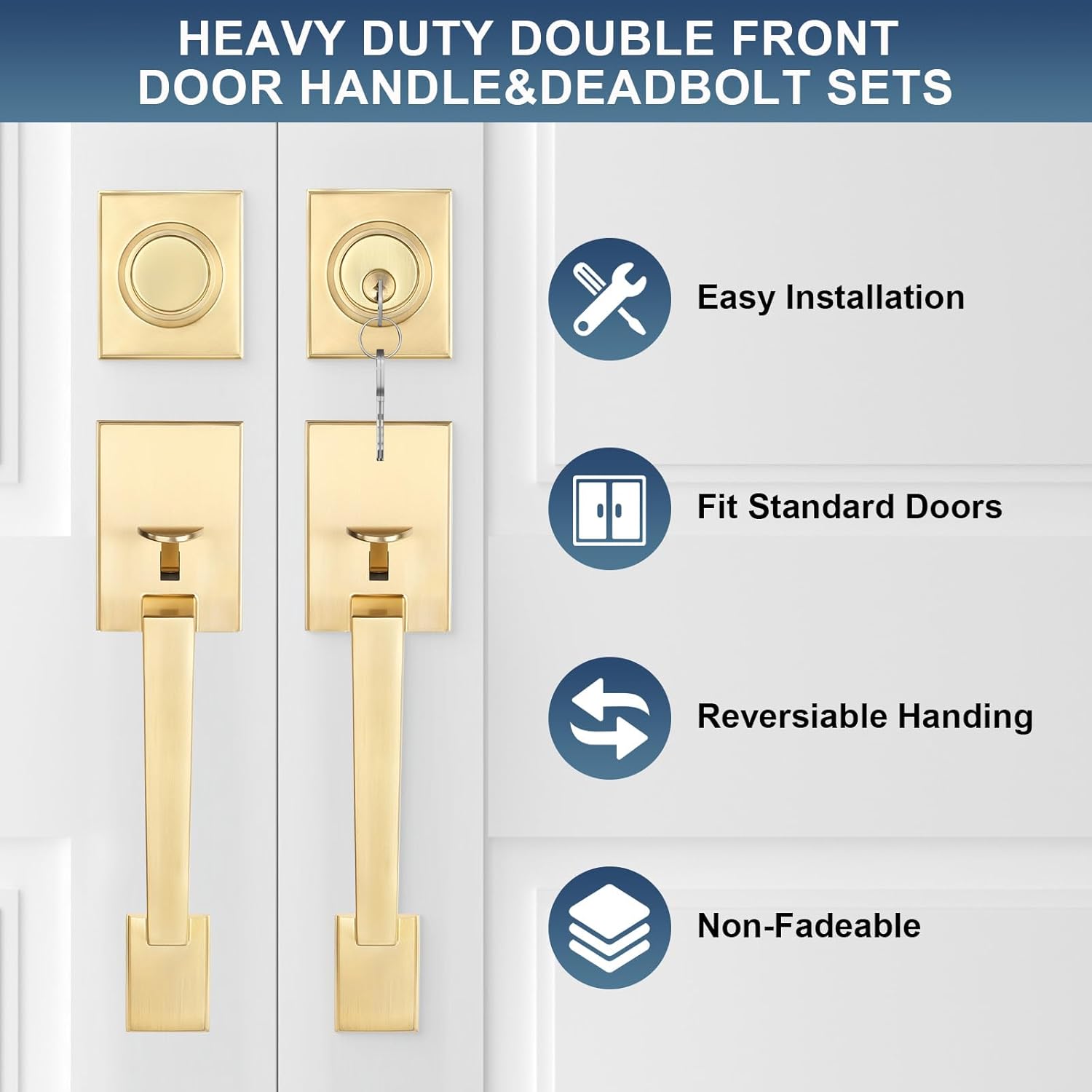 This heavy duty door lock set is designed to provide reliable protection for your home or business. With its durable zinc alloy finish, it not only offers long-lasting security but also adds a touch of elegance to your space. Whether you're upgrading an existing door or building new, this lock set is built to meet your needs and deliver lasting value. Designed for both residential and commercial use, the Haidms Gold Double Door Lock Set offers superior protection and a stylish look. Its heavy duty construction ensures that your door stays secure even in high-traffic or high-stress environments. With easy installation and a bold design, it's a practical and aesthetic upgrade that fits seamlessly into any setting. Whether you're looking for a security lock set or a gold finish door hardware that blends into your home's decor, this lock set delivers unmatched durability and functionality. Perfect for new builds, remodels, or daily use, it's a reliable choice for those who value both form and function in their door hardware.Enhance Door Security with the Haidms Gold Double Door Lock Set