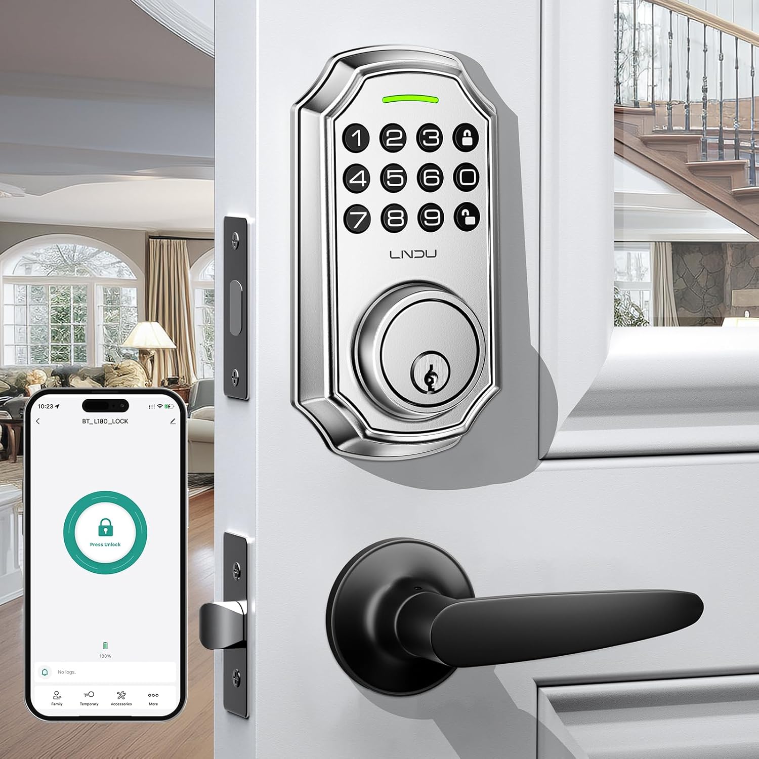 The product includes smart app control with Bluetooth connectivity, 100 unique passwords, and mechanical key compatibility. With auto lock and one-touch operation, it's an essential addition to your home security system. Perfect for smart home locks, secure door, and keyless entry solutions.
