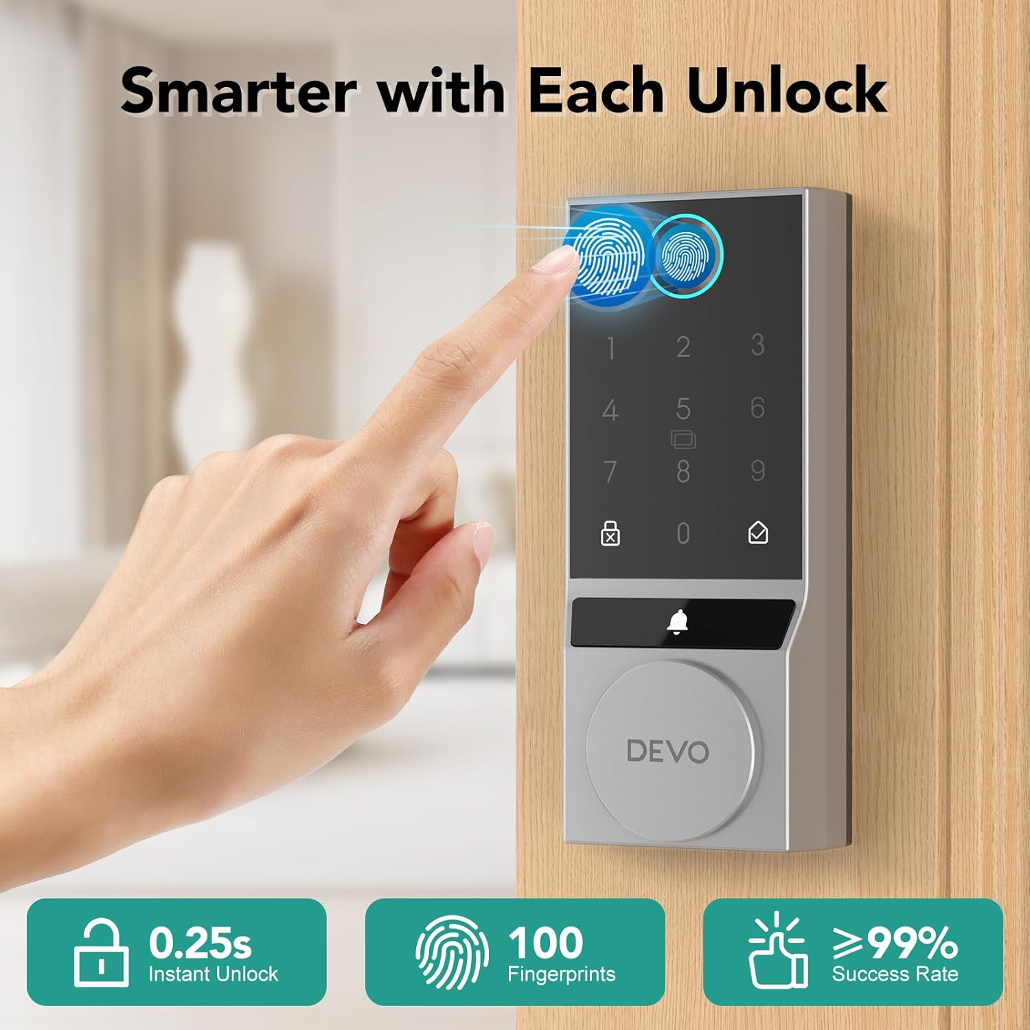 The Devo G3 brings modern technology into your home. Its keyless entry design eliminates the need to carry keys, while the AI fingerprint recognition ensures only authorized users can access your property. Whether you're a tech enthusiast or looking for a safer, smarter way to secure your space, the Devo G3 is built to meet your needs with ease and reliability. Stay protected 24/7 with convenient access control and peace of mind you can trust.