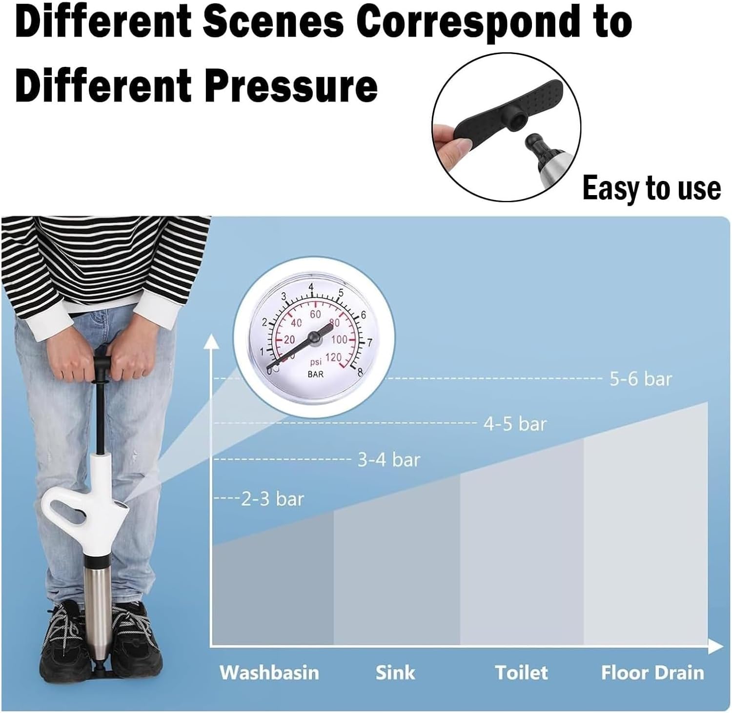 Featuring a visual pressure barometer, this tool allows you to monitor air pressure levels in real time. This ensures precise control over the unclogging process, so you can achieve optimal results with every use.