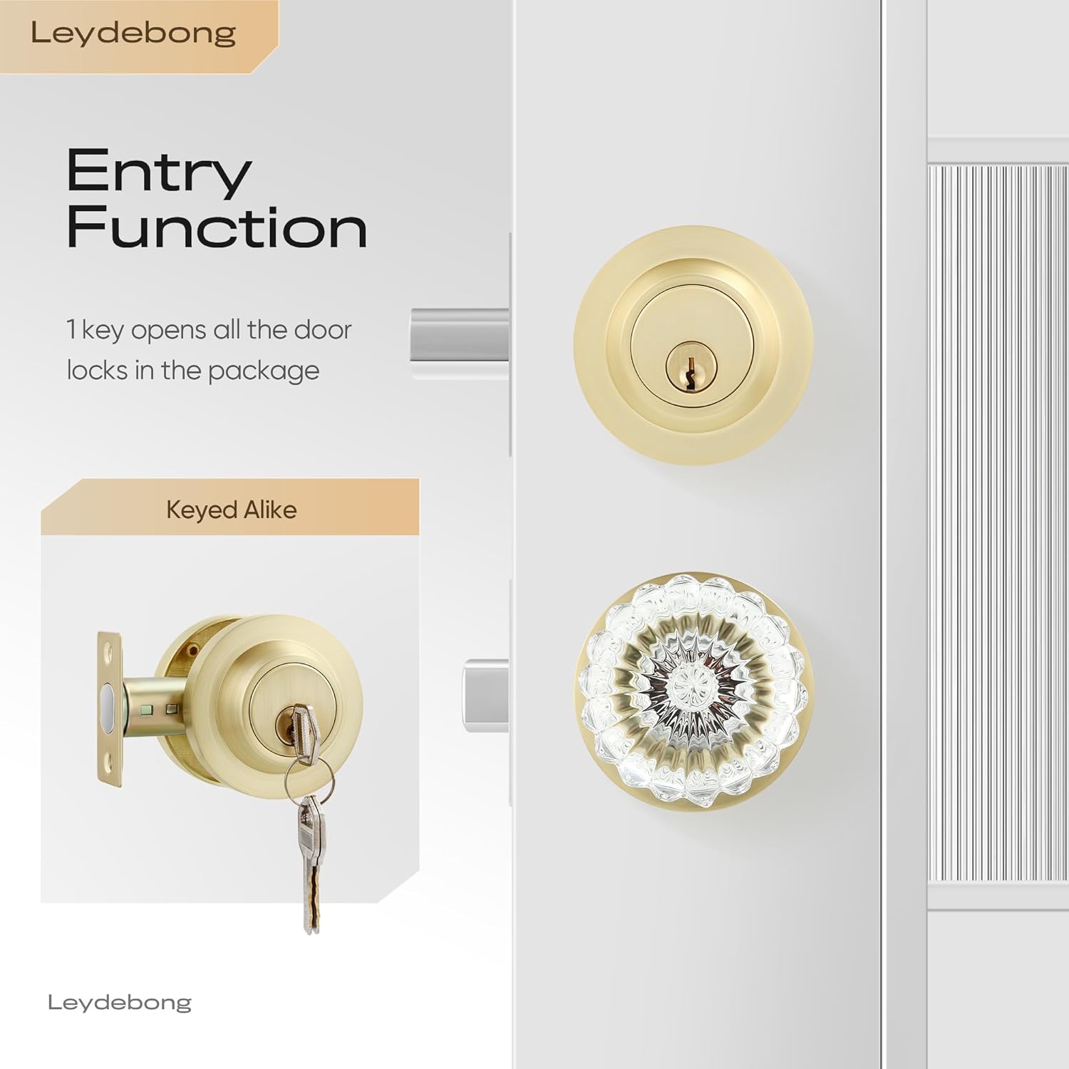 Upgrade your homeâs entrance with the Leydebong Crystal Glass Door Knob Set. Combining advanced security features with sleek, elegant design, this lock set is the perfect blend of function and fashion. Its durable zinc alloy finish ensures long-lasting performance, while the sophisticated glass knobs add a refined touch to any modern interior.