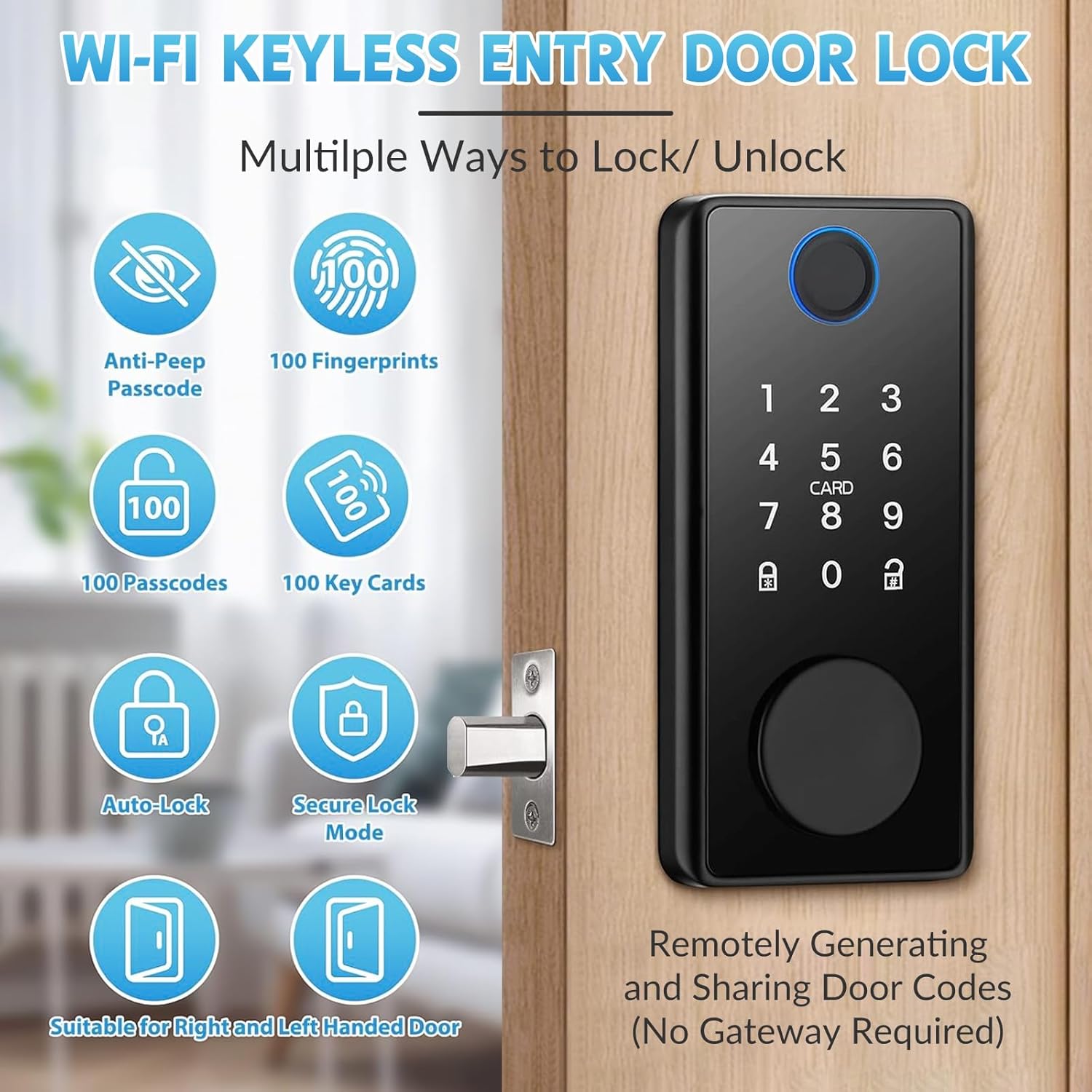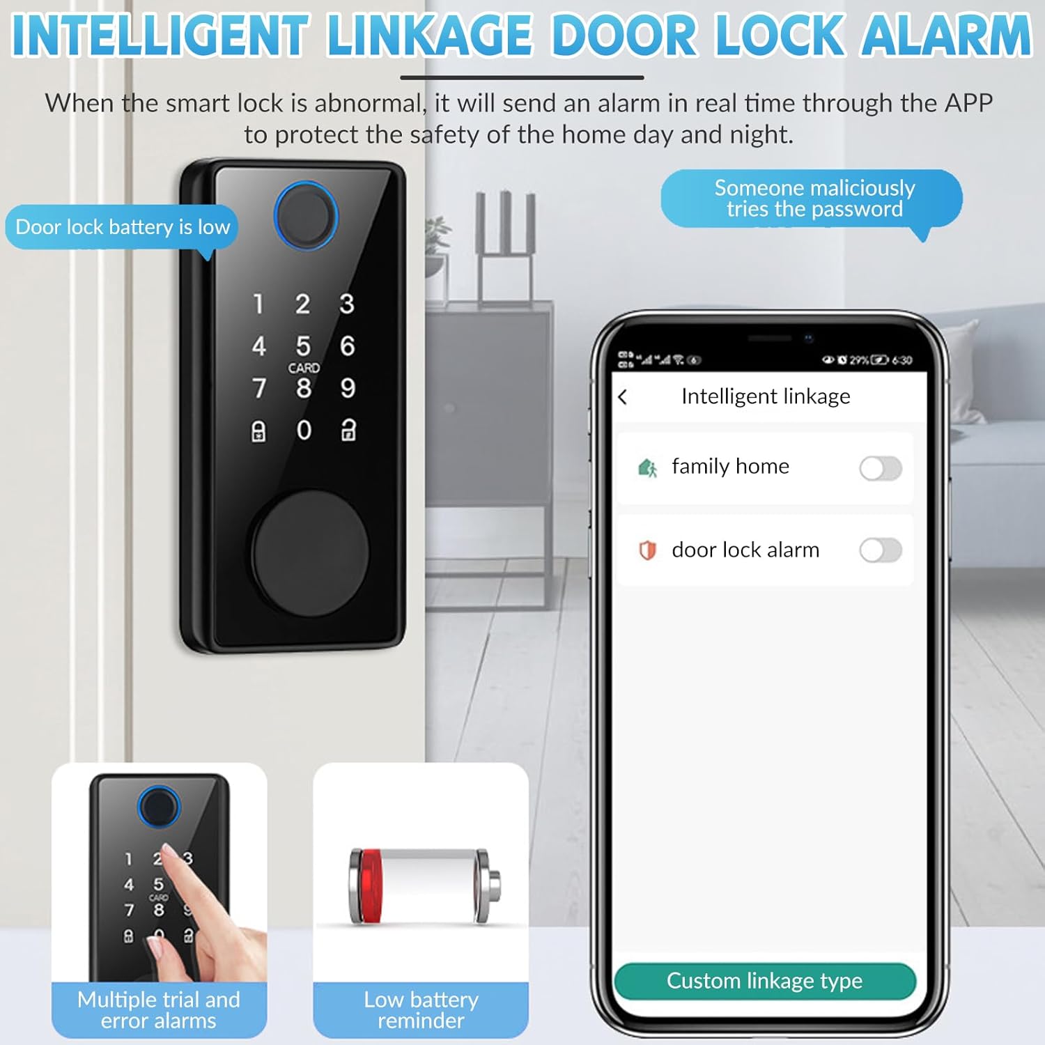 Our smart deadbolt lock combines the latest security technology with user-friendly design. With fingerprint entry and a keyless door lock, you can unlock your front door security effortlessly. The alarm system notifies you of any unauthorized attempts, providing peace of mind. Whether you're home or away, you can control your lock remotely through a mobile app. This system is built for reliability and performance, making it the perfect upgrade for your home security needs.