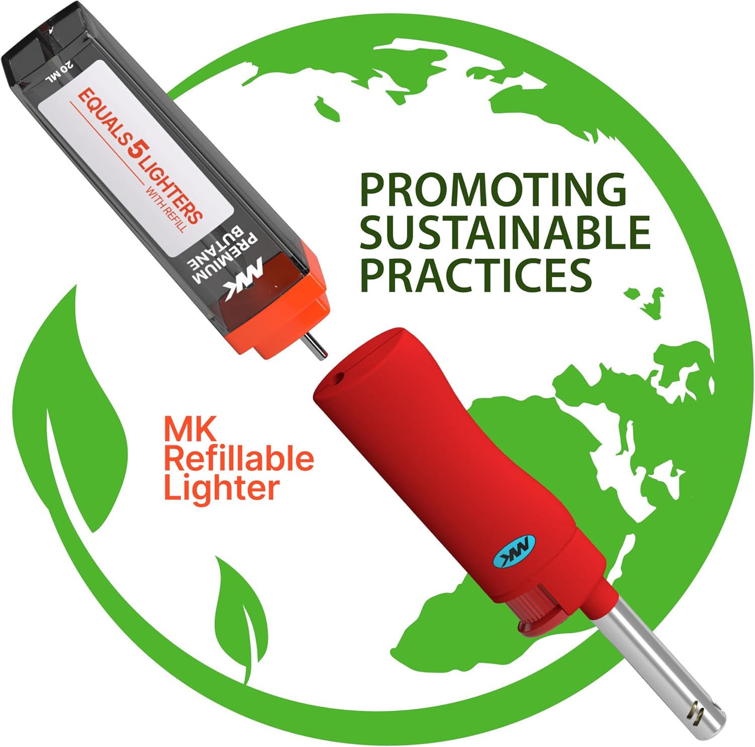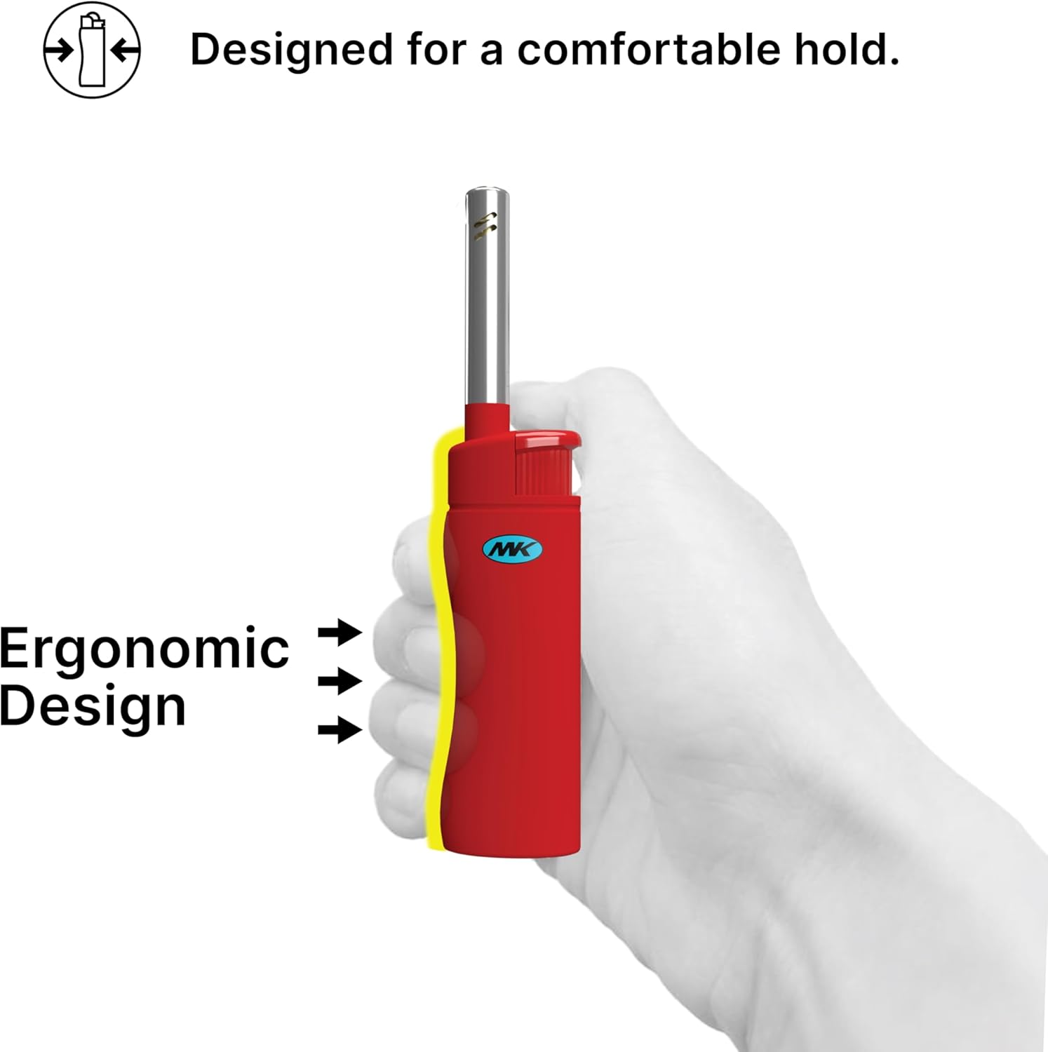 Whether you're at home, on a camping trip, or setting up for a backyard gathering, the MK Lighter 3BL is designed to meet your every requirement. Its compact size makes it easy to carry in your pocket or bag, while the refillable butane tank ensures you never run out of fuel. With a non-slip grip and windproof flame, it's safe, easy to use, and built for reliability.