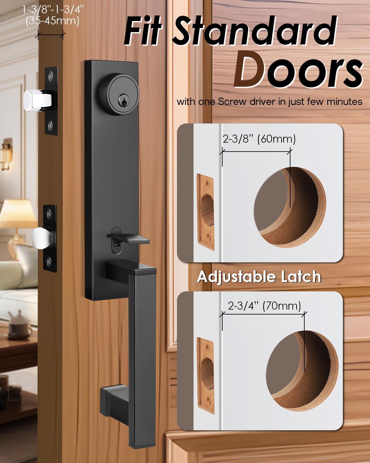 Featuring a matte black finish, this lock set gives your home a modern, refined appearance without compromising on performance. It's ideal for adding a touch of elegance to your front door while enhancing security.