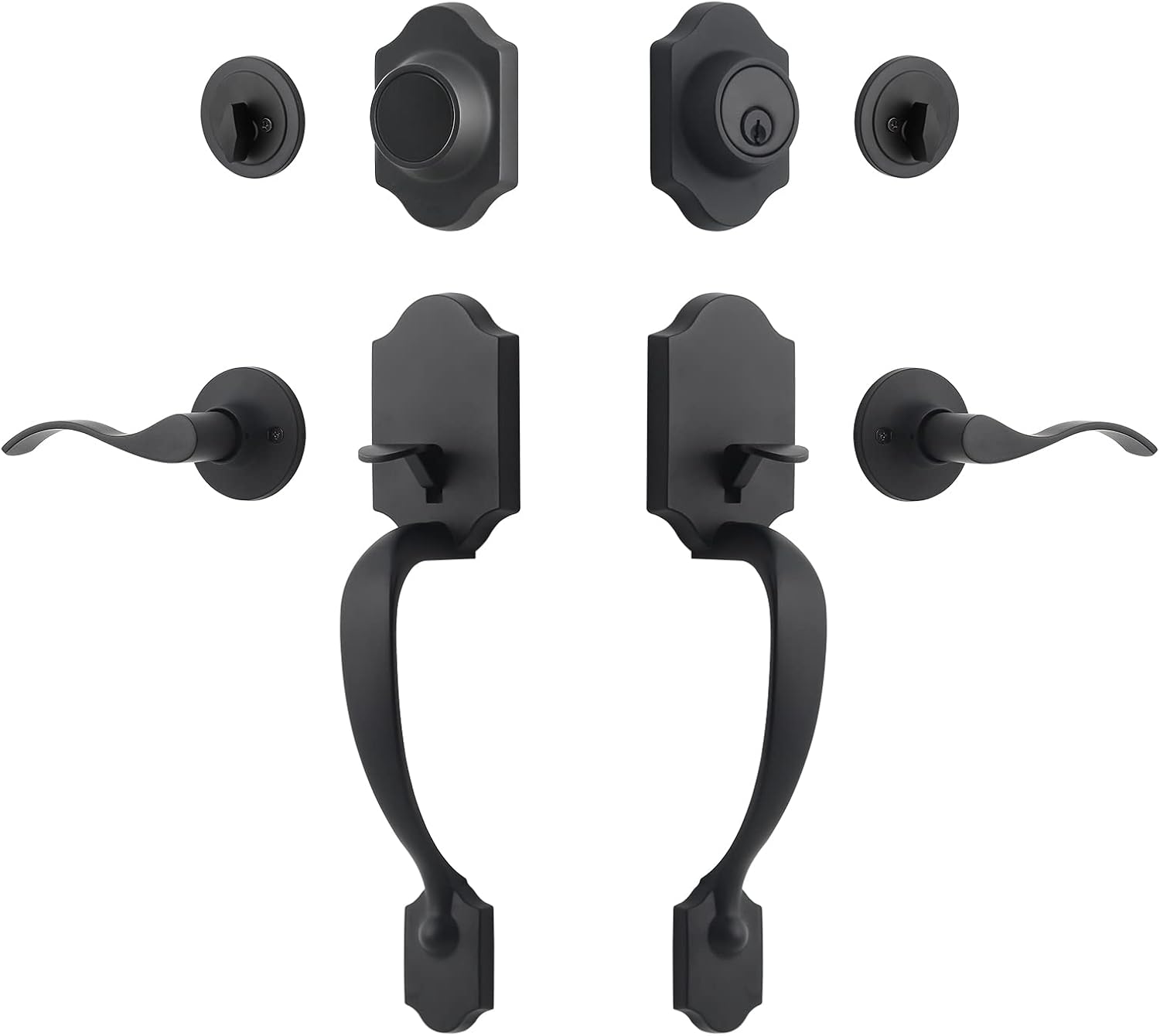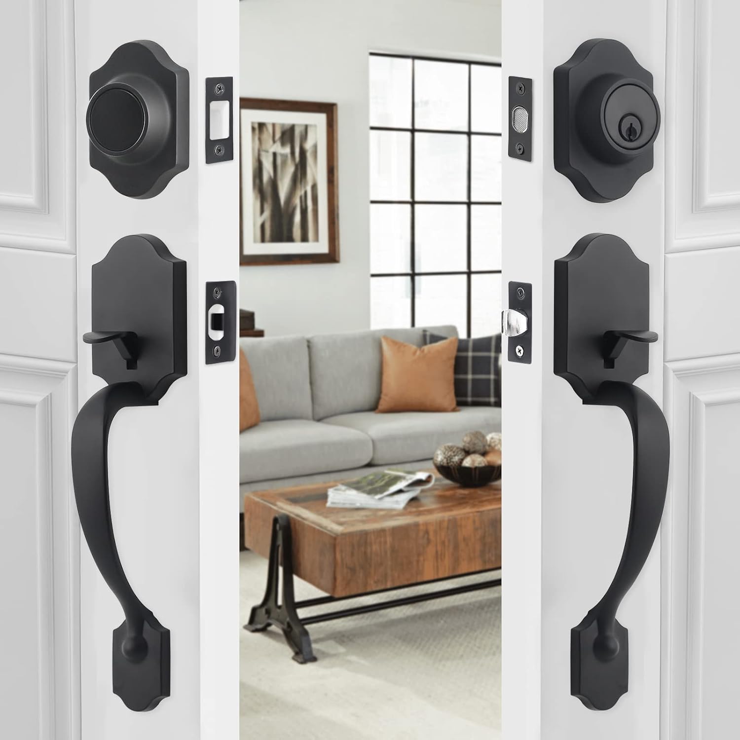 Upgrade your home's entrance with this stylish and secure double door handle set. Meticulously crafted for both form and function, it combines a sleek matte black finish with robust, long-lasting performance.