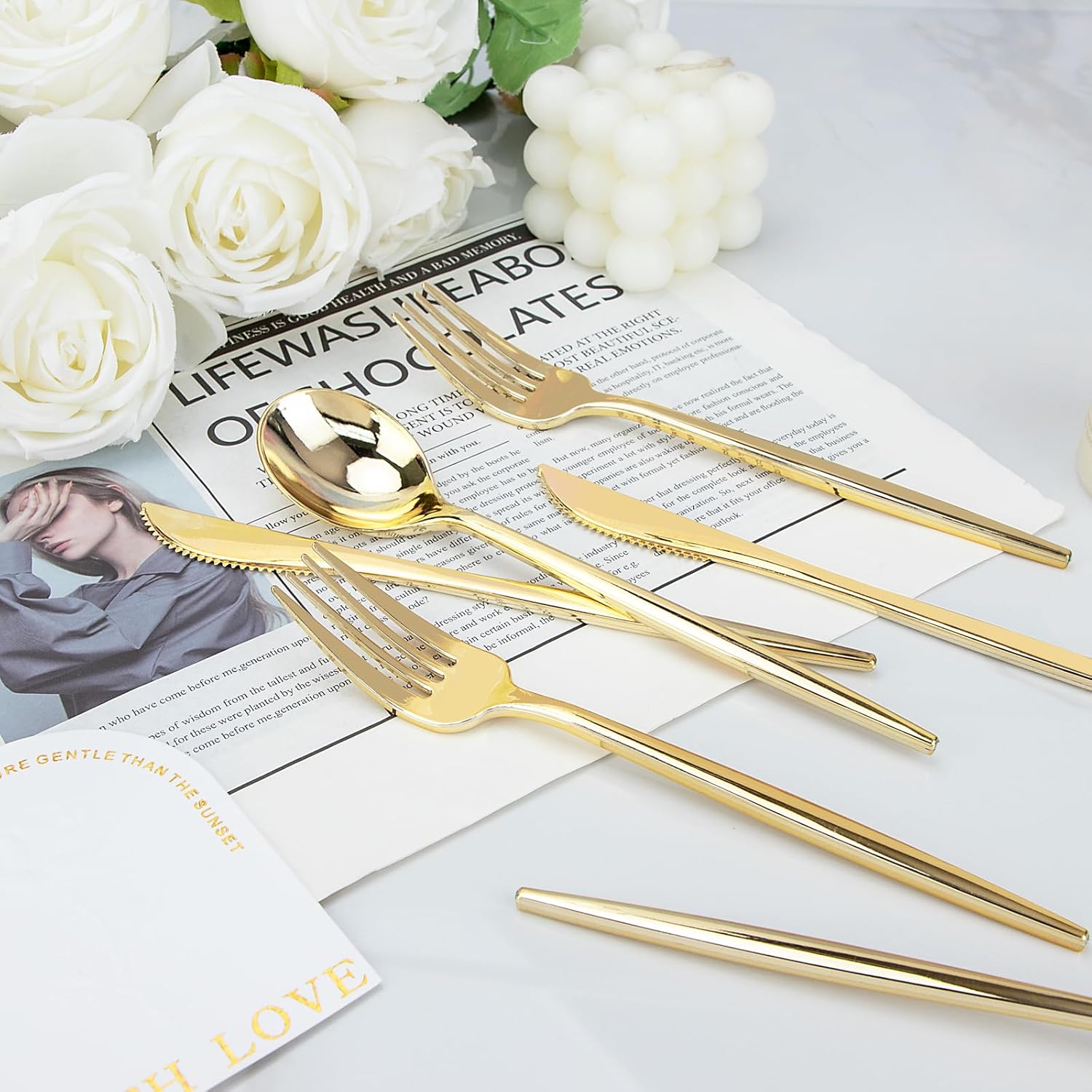 Add a touch of luxury and convenience to your next gathering with our PULOTE disposable silverware. Designed to mimic the brilliance of real gold, these pieces bring an air of sophistication to any celebration. The set includes 50 knives, 50 forks, and 50 spoonsâperfect for feeding up to 50 guests without compromising on quality or style.