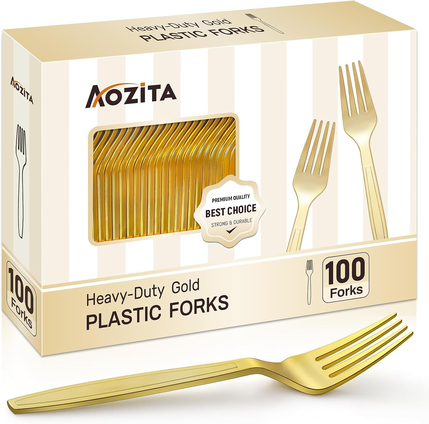 Enjoy your meals with these heavy-duty, disposable plastic forks in a stunning gold design. Perfect for parties, weddings, picnics, and any special event, these forks are crafted to last and look great, making every bite an elegant experience.