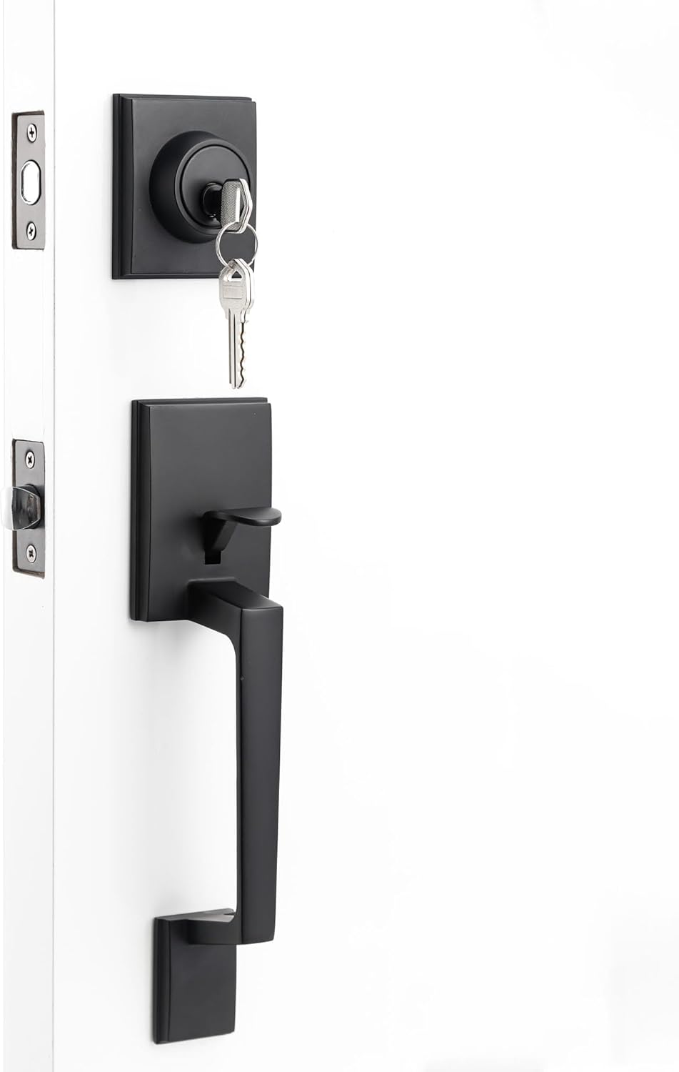 The matte black finish adds a sophisticated and modern look to your front door, complementing a wide range of interior and exterior decor styles. Whether you're updating your home's entrance for the first time or adding a new touch to an existing one, this handle set enhances both aesthetics and security.