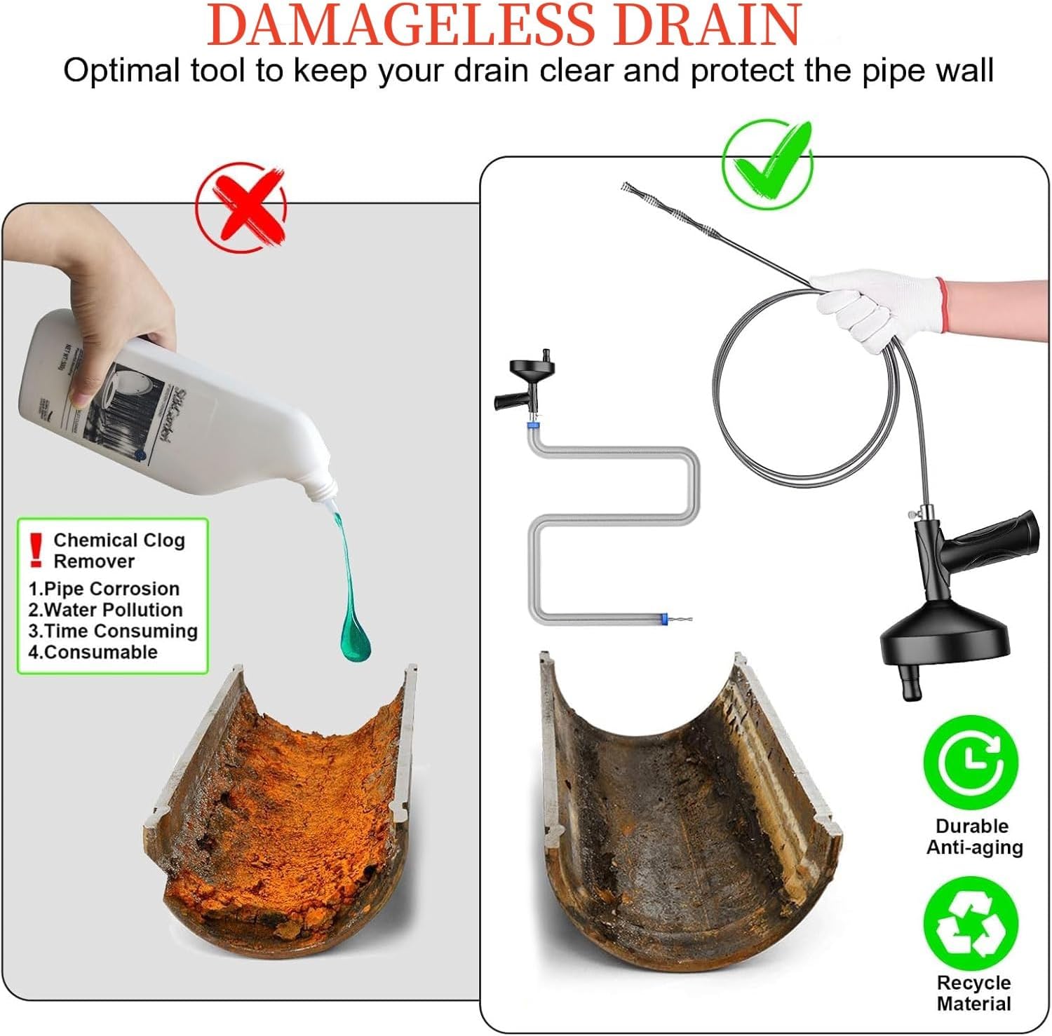 Unlike harsh chemical cleaners, this drain snake offers a safe and effective way to unclog drains. The reinforced PE shell and spring steel cable ensure long-lasting performance, while the ergonomic pistol grip allows for easy handling and extended use without strain. Itâs the perfect solution for maintaining clear plumbing systems and keeping your home running smoothly.