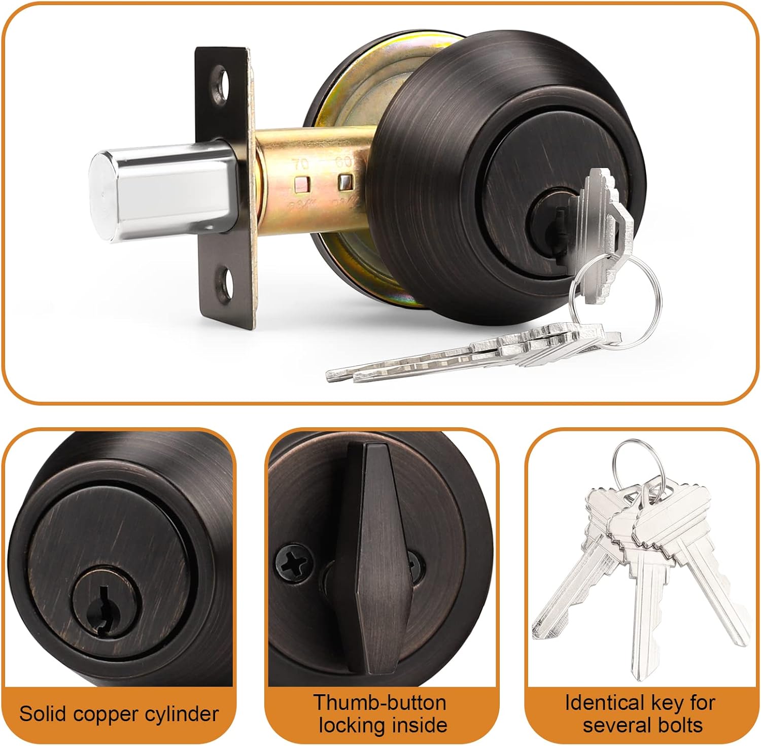 Sturdy and Easy to Clean: Made from zinc alloy, these deadbolts are built to last and are simple to maintain.