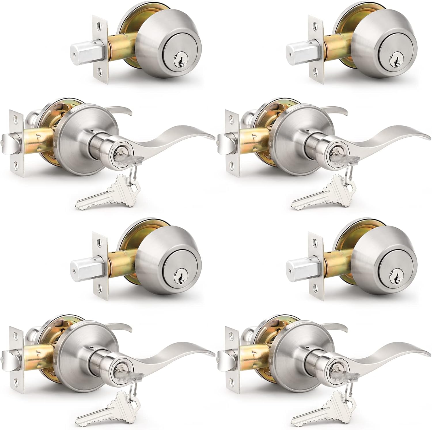 Elevate your homeâs security and style with the Probrico 4-Piece Satin Nickel Entry Lever and Deadbolt Set. This sleek and modern handleset is engineered for reliability, meeting ANSI Grade 3 standards to ensure long-lasting performance. It includes a single cylinder deadbolt and a high-quality door lever that can be easily operated from both inside and outside with a thumb-turn or key.