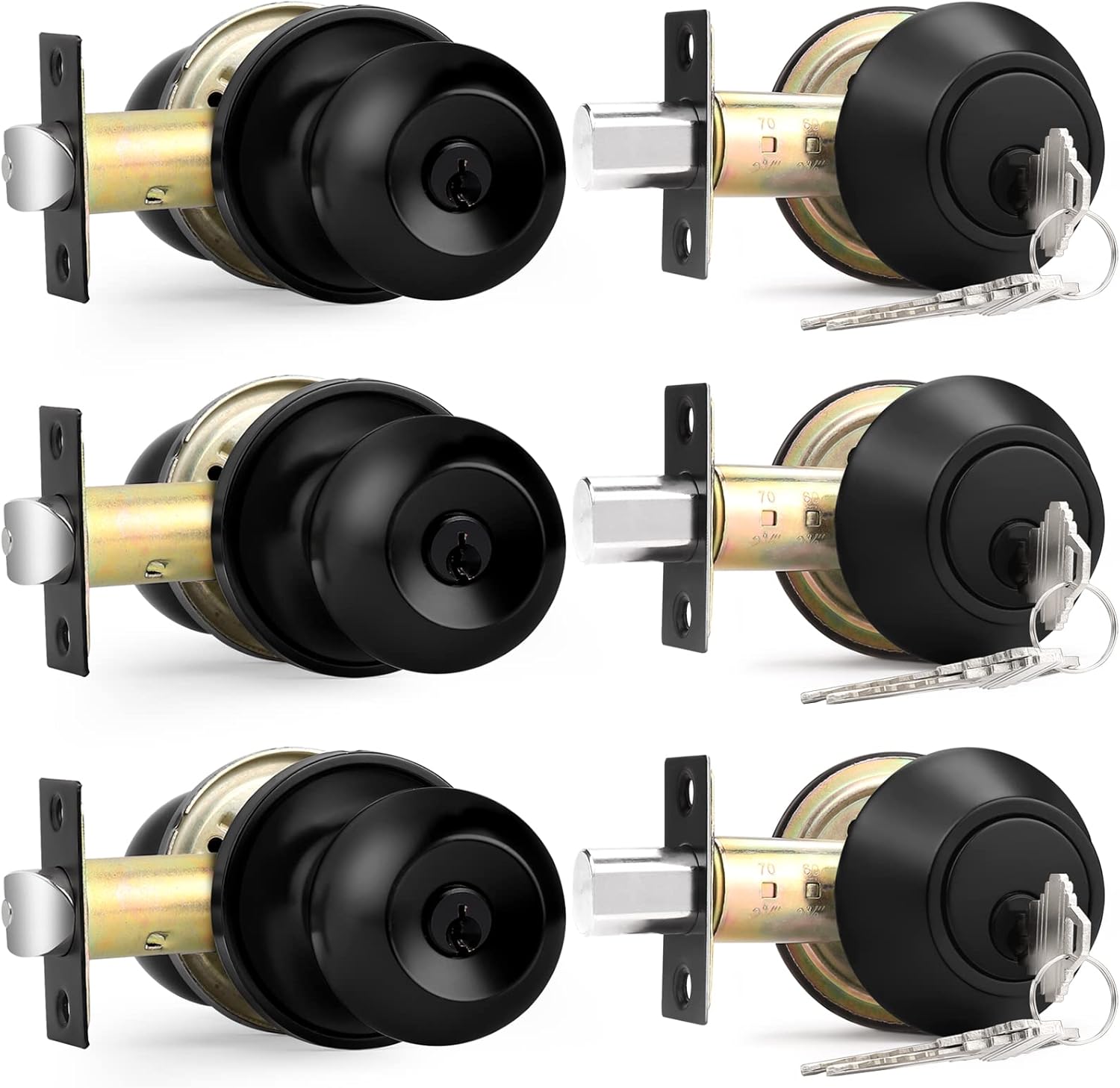 Upgrade your home security with a sleek and durable solution that's built to last. This Probrico flat black door handleset is crafted for entry doors, offering both style and performance. With a 3-pack combo of entry door knobs and deadbolts, it's perfect for those who value convenience and compatibility.