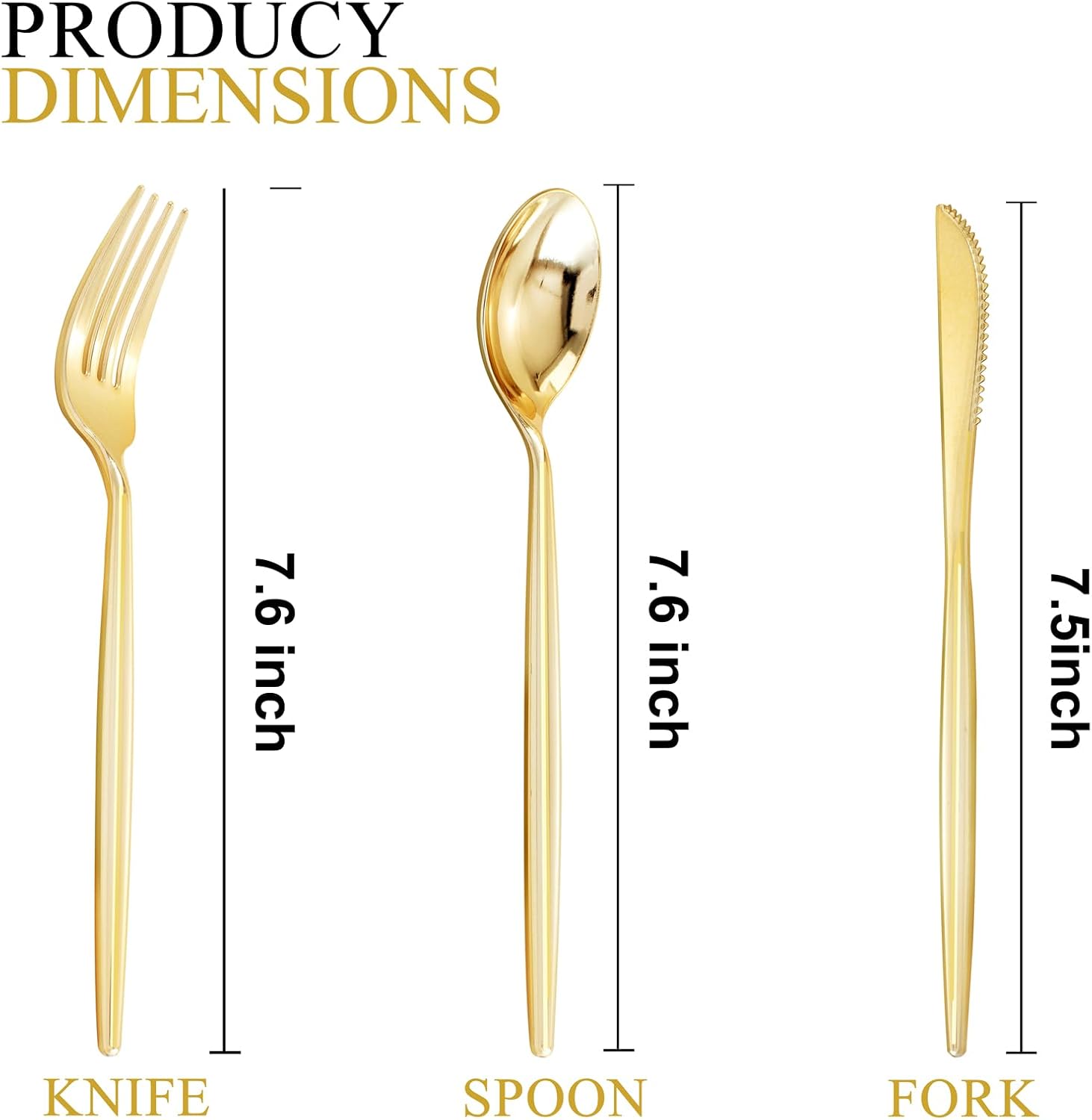We offer a perfect blend of quality, safety, and beauty. Our gold plastic utensils are designed for maximum durability and ease of cleaning, while their elegant appearance ensures you make a lasting impression at every gathering. Whether you're preparing for a holiday feast or planning a casual dinner, these silverware sets will elevate your experience with their refined look and reliable performance.