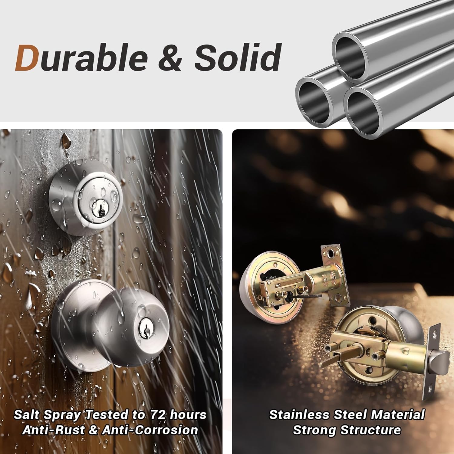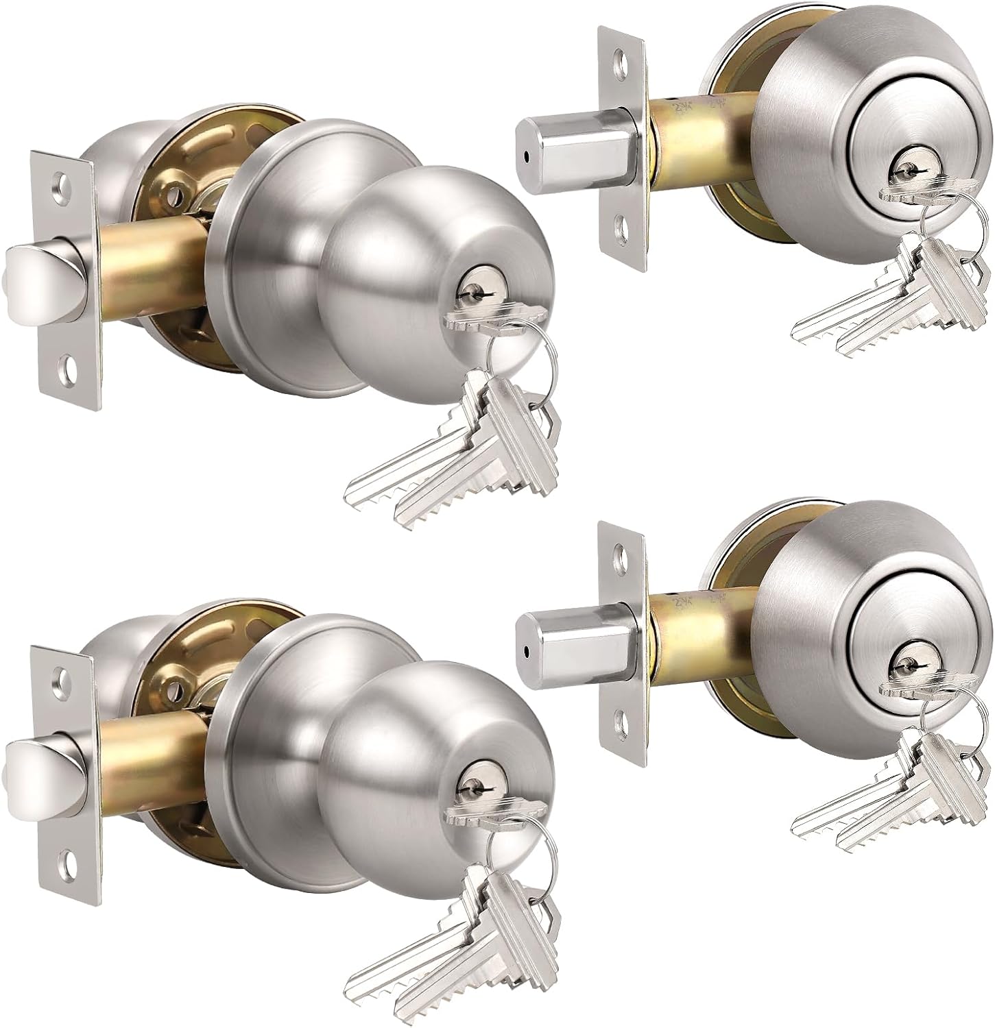 Enhance your home's security and style with a reliable, durable door hardware set. Crafted from high-grade stainless steel, this 2-pack of door knobs and deadbolts is built to withstand over 250,000 cycles and meets ANSI Grade 3 standards, ensuring long-term performance and safety.