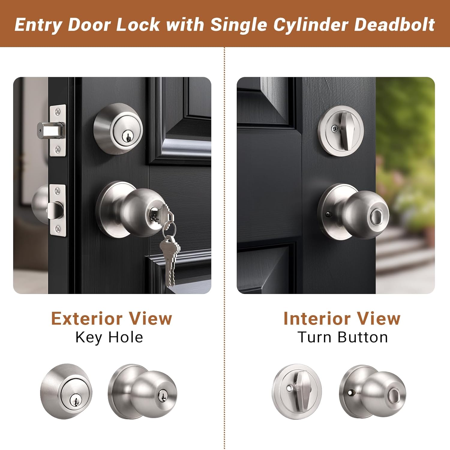 Front doors, exterior doors, and other entry points where both aesthetics and security are important. This set is perfect for homeowners looking to upgrade their door hardware with a single, coordinated design that enhances the look and safety of their home.