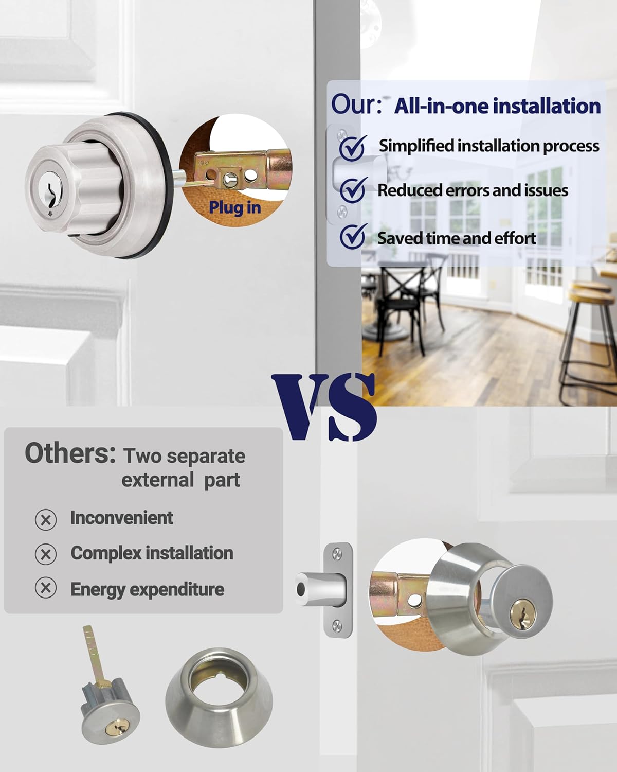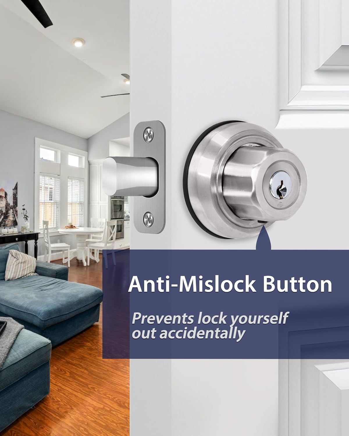 A secure, worry-free entrance with unmatched convenience. The twist-to-lock feature and anti-mislock button combine for a reliable lock that’s simple to use and built to last. Perfect for everyday or emergency use. [Secure, Keyless Entry, Dependable].