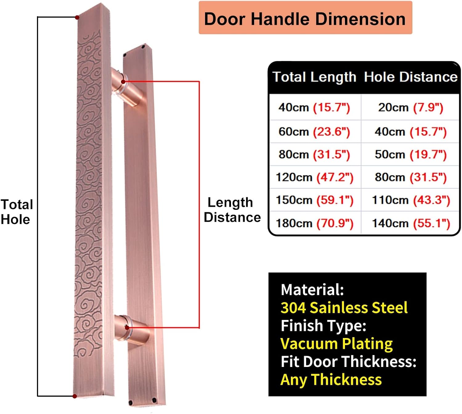 This H-shaped door handle brings a modern touch to any doorway with its eye-catching cloud pattern. Designed for sliding, barn, or closet doors, it offers both aesthetic appeal and exceptional durability. Crafted from 304-grade stainless steel, it resists rust and corrosion, making it a long-lasting choice for your home. Available in gold and pink finishes, it seamlessly blends with both contemporary and traditional interiors. The included fixing screws make installation a breeze, and it's the perfect match for deadbolt locks, ensuring smooth and secure operation. Choose from two popular versions: the 40cm model for interior doors or the 60cm model for larger or exterior spaces. Whether you're upgrading your entryway or a closet, this sleek handle set delivers an elegant solution that complements your design vision. Its simple yet sophisticated design makes it ideal for a variety of door types, including sliding glass, aluminum, or wood. Add a touch of refinement to your home with a door handle that's as functional as it is fashionable.Elevate Your Door Experience with Style and Strength
