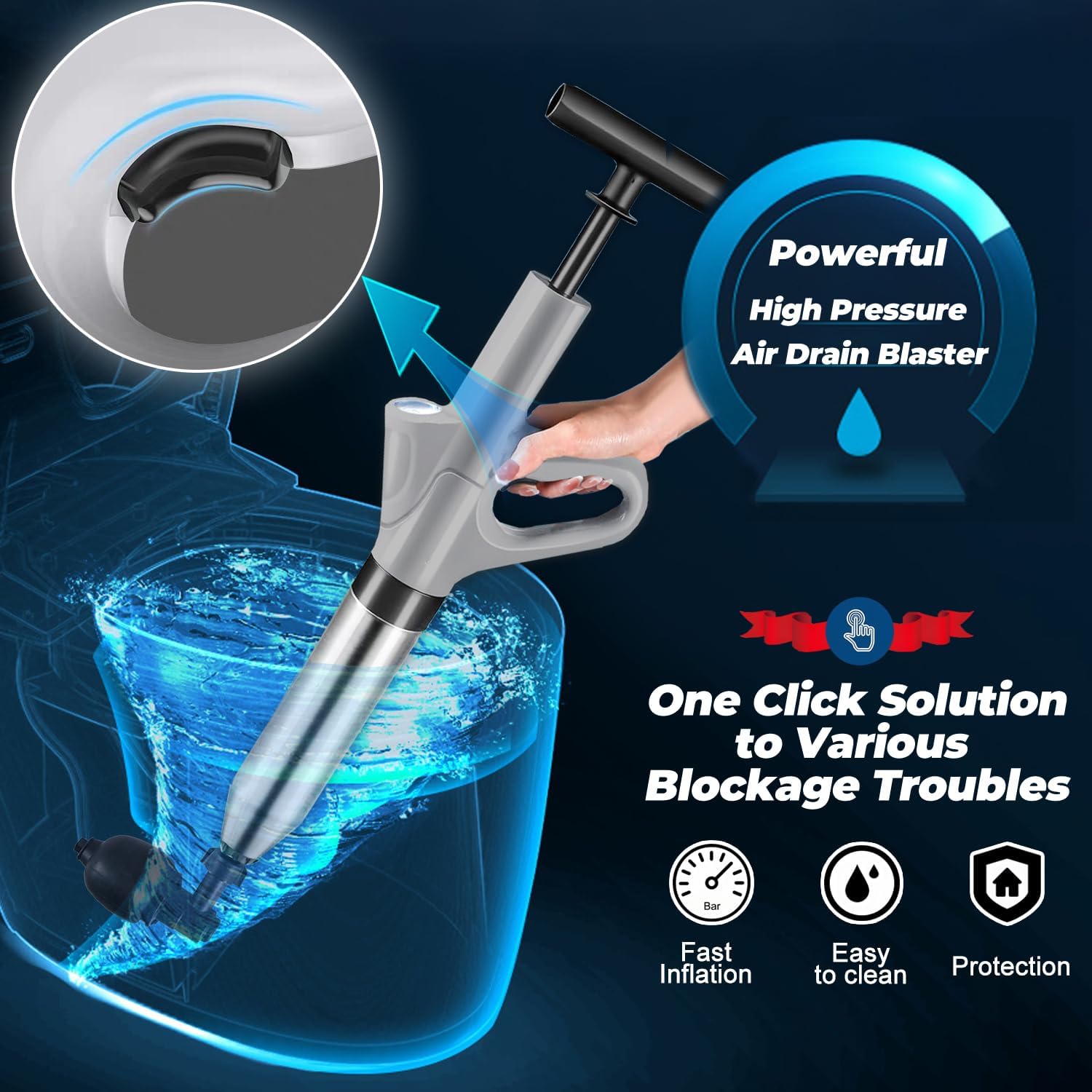 Equipped with a built-in barometer, this plunger ensures proper inflation and prevents overworking. The intuitive gauge lets you monitor air pressure in real time, giving you the confidence to clear clogs efficiently and safely. Youâll experience unclogging in just a few minutes, making your life much easier and saving you time and money.