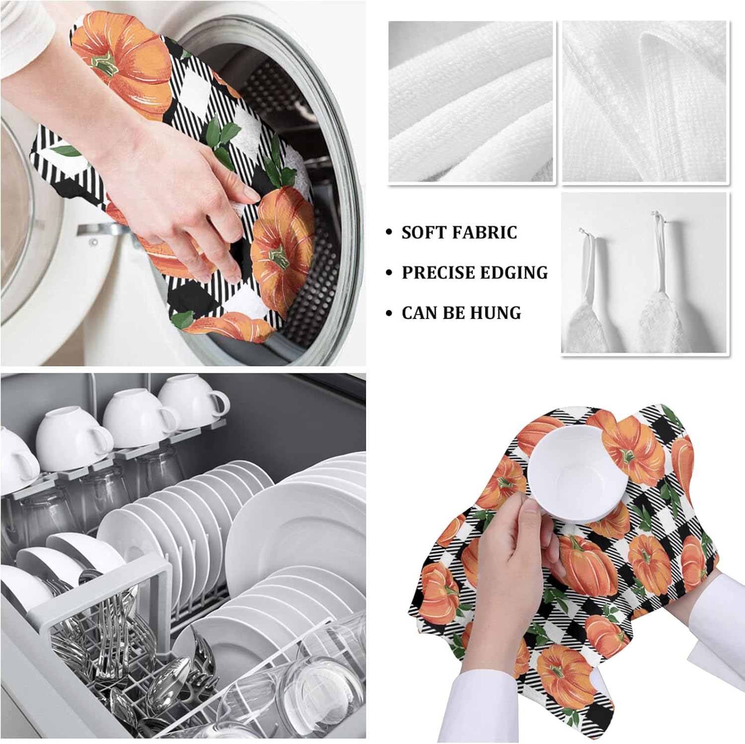 The vibrant orange plaid design not only adds festive flair but also makes these dish towels a stylish addition to your holiday table. Ideal for everyday use, they're machine washable and safe for all washing cycles, ensuring they stay fresh and durable for years to come.
