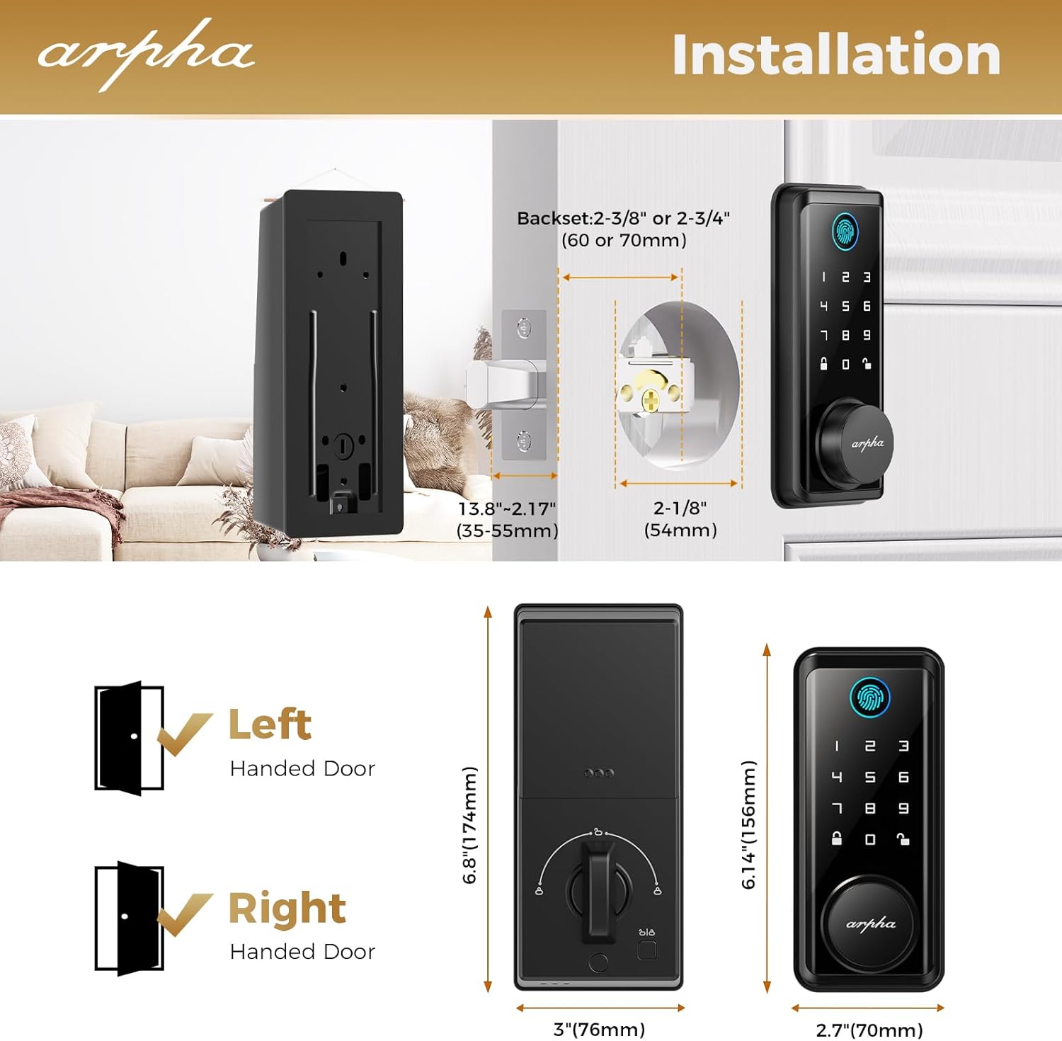 Crafted with high-quality zinc alloy, this deadbolt lock is built to last and withstand daily use. It features a user-friendly design that makes installation a breeze, even for DIY enthusiasts. The backset scales are compatible with a range of door thicknesses: 35mm to 55mm. This smart lock fits seamlessly into your home, offering both reliability and peace of mind.